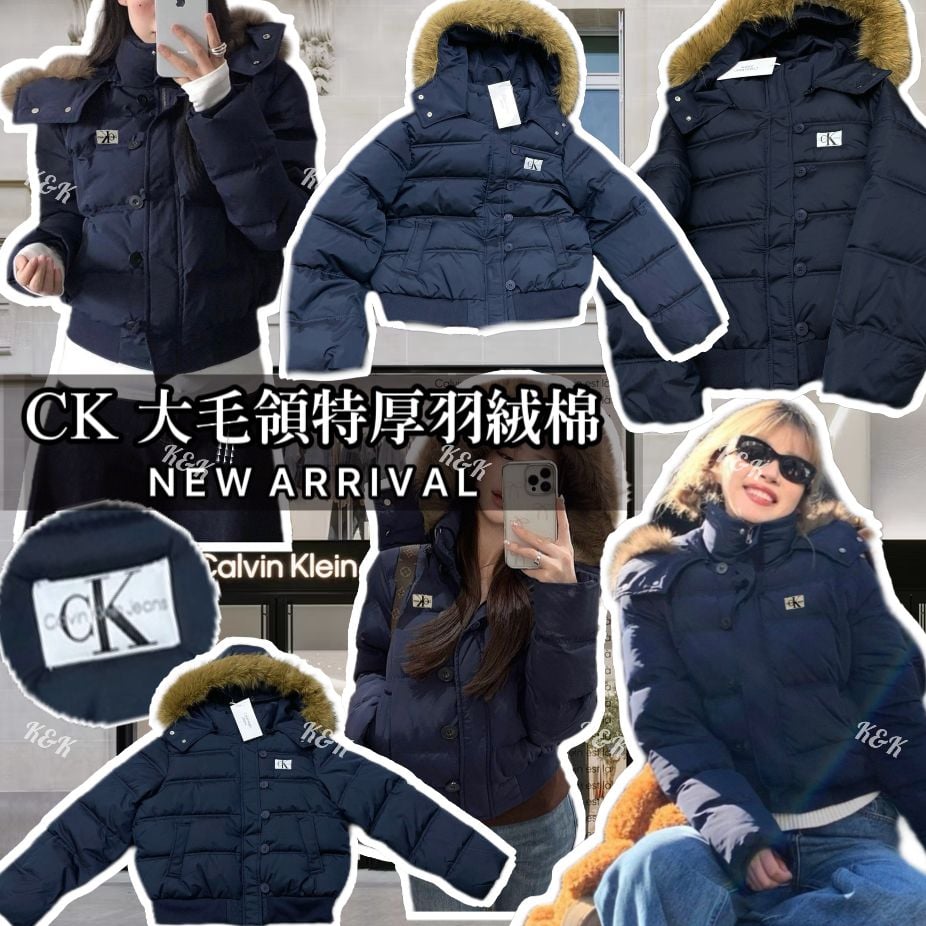 $250件。CK大毛領特厚羽絨棉服蓬鬆保暖連帽,保暖加厚棉褸情侶款