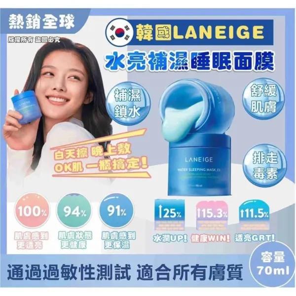 $ 95件。2件起$85件。韓國🇰🇷Laneige 品牌皇牌 🏆Water Sleeping Mask EX 升級版 水亮補濕睡眠面膜 70ml