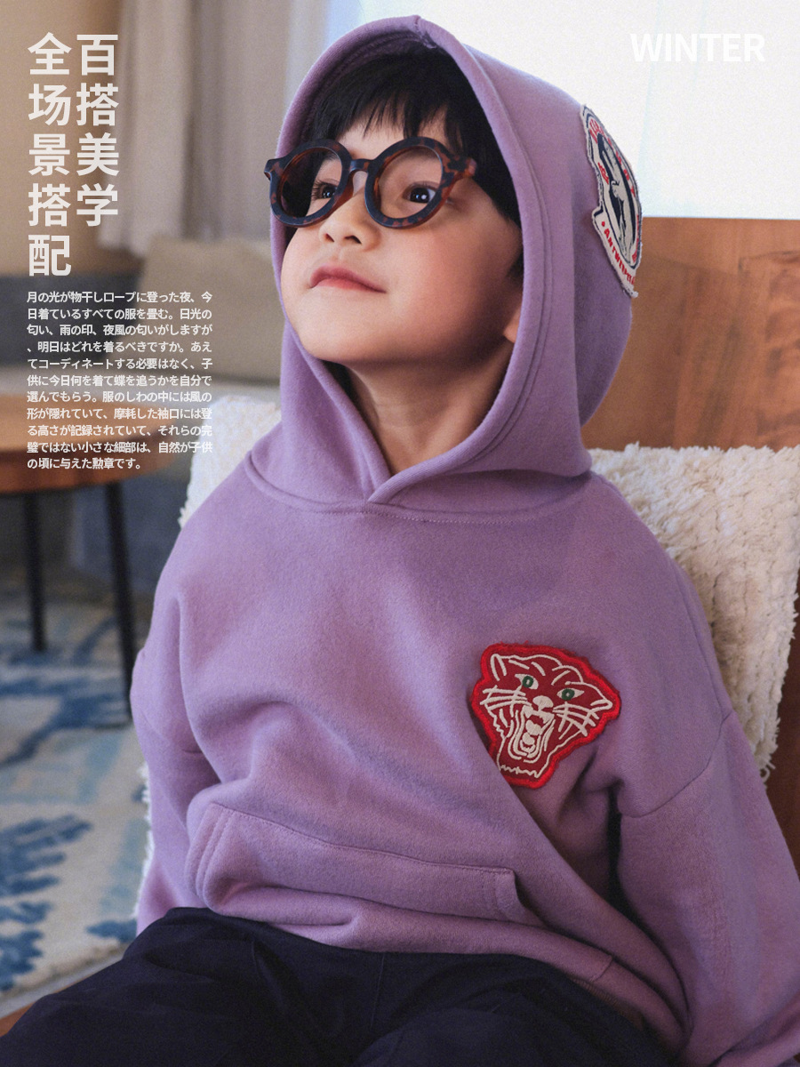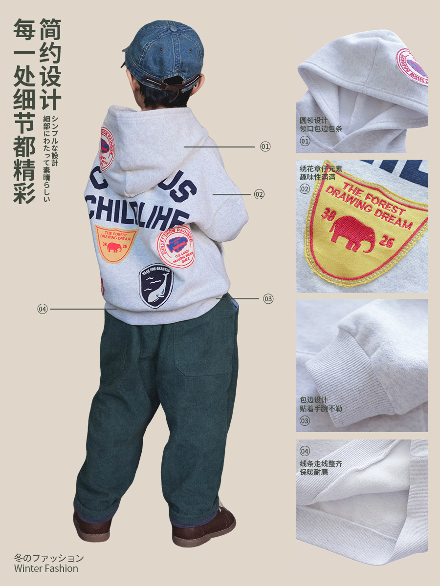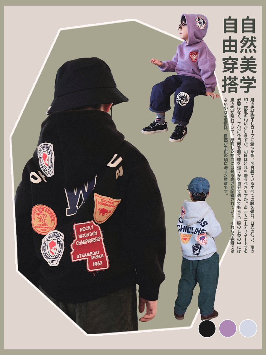 🧢 日系街頭拼章連帽衛衣(童裝) 🧢