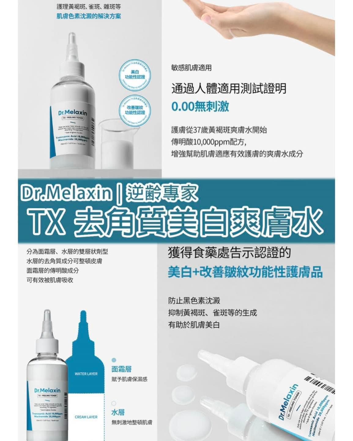 $115支。2支起$105支。★ Dr.Melaxin 逆齢專家 TX 超強 去角質美白爽膚水 150ml