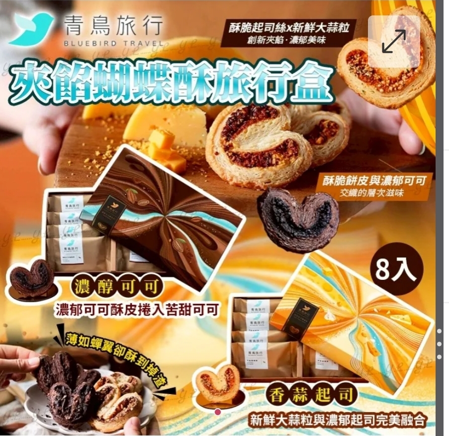 $115盒.2盒或起$105盒.青鳥旅行夾餡蝴蝶酥旅行盒 (1盒8入)