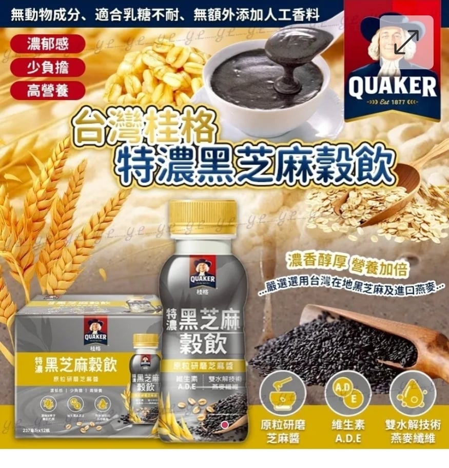 這款 台灣桂格特濃黑芝麻穀飲 (一箱12瓶) 絕對是日常必備!
