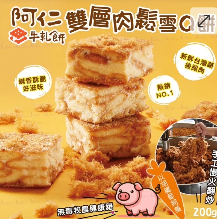 $115袋.2套或以上 $99袋.台灣阿仁牛軋餅雙層肉鬆雪Q餅200g