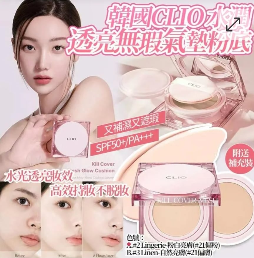 韓國人氣女團IVY推薦CLIO奶油水潤光彩透亮無瑕氣墊粉底附送補充裝(1+1限定套裝)