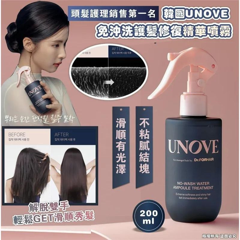 $120瓶. 2瓶起$115瓶。韓國UNOVE 免沖洗護髮修復精華噴霧200ml