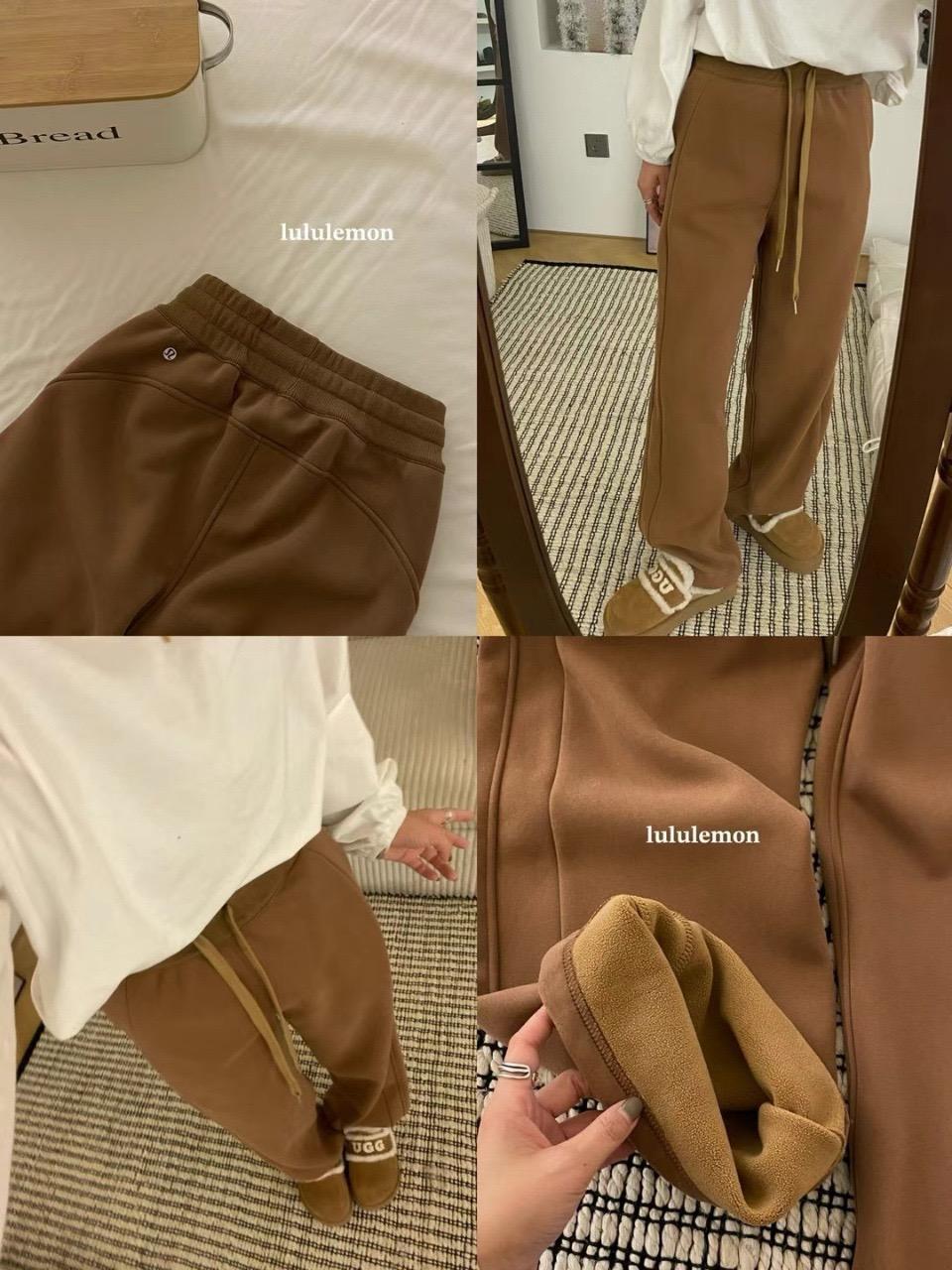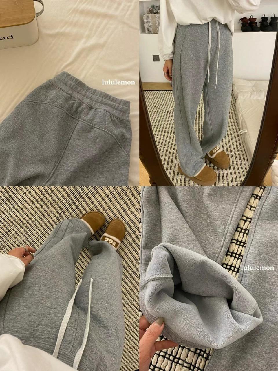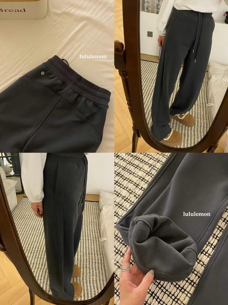 $125件。2件起$115件。lulu中腰加絨闊腿褲
