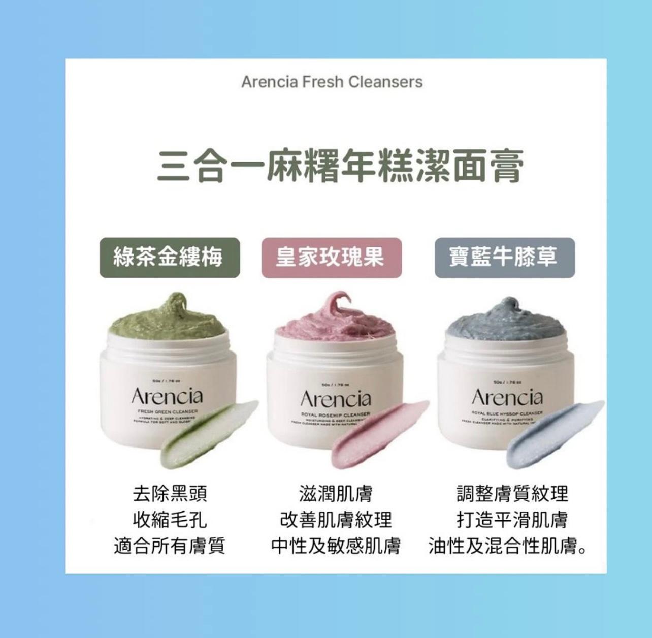 $128件。2件起$ 118件。 韓國 ARENCIA 三合一麻糬年糕潔面膏 120g 銷量第一的arencia年糕潔面乳.ᐟ 不管是顏值還是潔膚效果都很厲害👍🏻 一膏多用 能清潔還能當泥膜用 洗臉的同時保養肌膚 質地像年糕一樣柔軟有彈性 蘊含天然成分提取物的顆粒感 洗臉順便帶走毛孔內的髒污與角質 沾水馬上就能揉出豐富泡沫🫧 洗完不乾澀還帶有清新香氣 🍵綠意清新 銷售冠軍🇰🇷 成分含金縷梅、綠茶、綠豆、杏仁粉 有效去除黑頭粉刺 強化肌膚屏障 👉🏻適合所有肌膚 🌹皇家玫瑰果 成分含玫瑰果、粉紅蘆薈、德國洋甘菊 保濕水潤 柔嫩鎮靜 👉🏻適合中性&敏感肌 🌱皇家牛膝草 成分含海索草、海水、白樺茸、黑薏米 清爽保濕 光滑肌膚 👉🏻適合混合肌 兩種用法🔍 1️⃣日常清潔:取1元硬幣大小,加水搓揉後在臉上畫圈按摩,用清水洗淨。 2️⃣清潔面膜法:搓出泡沫塗全臉,靜置1~2分鐘再輕柔洗淨。 訂貨需時7至14天
