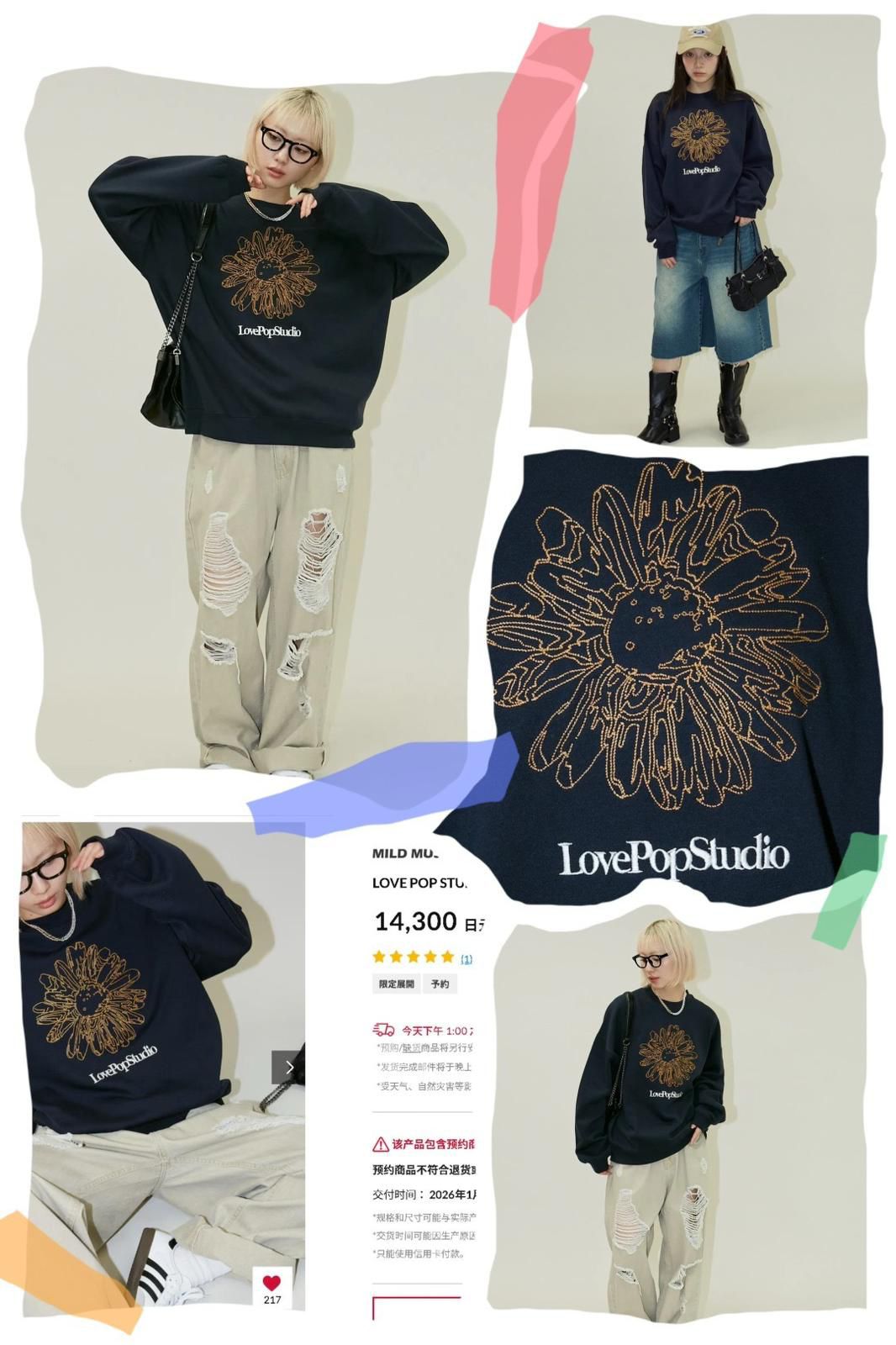 MM-FR刺繡花朵圓領衛衣