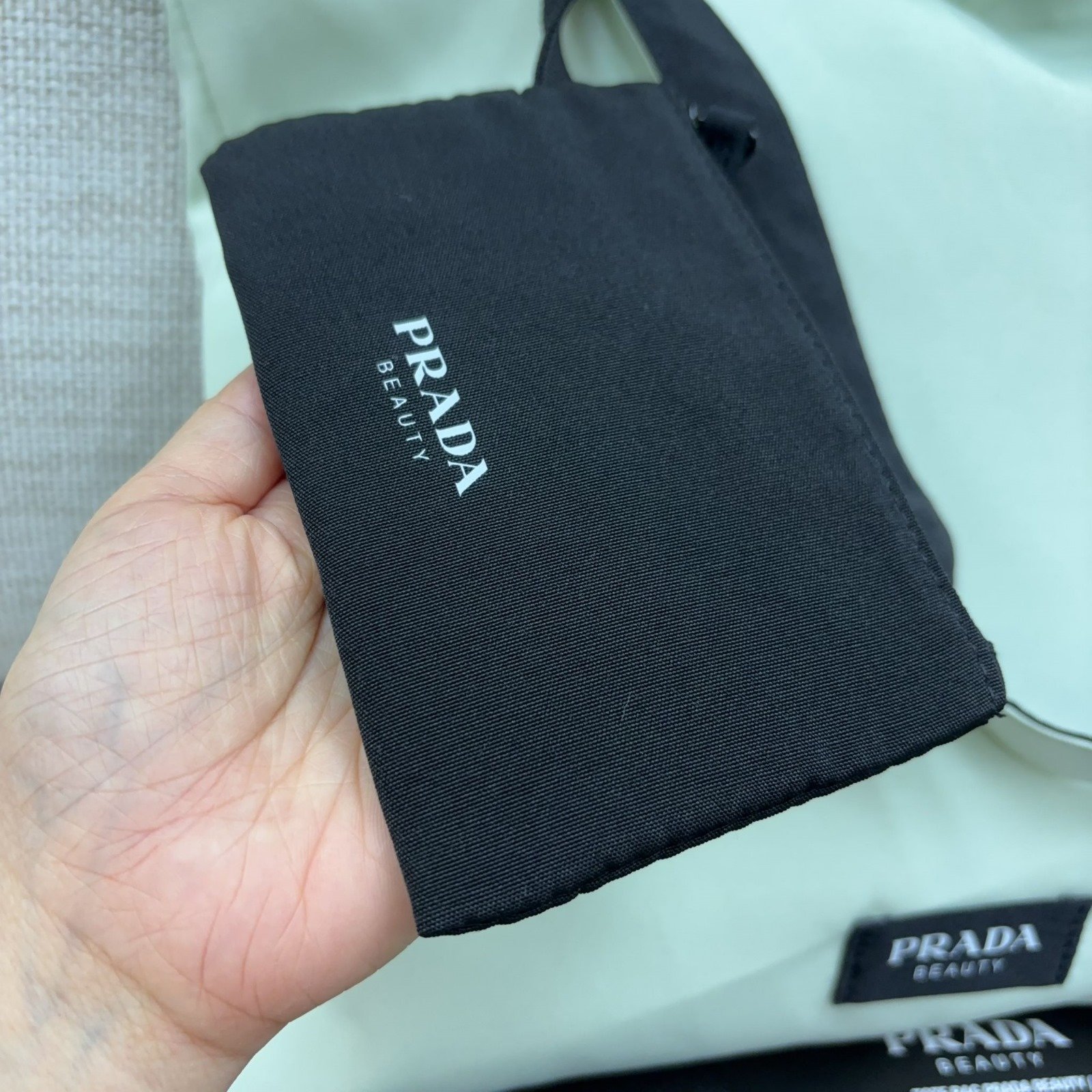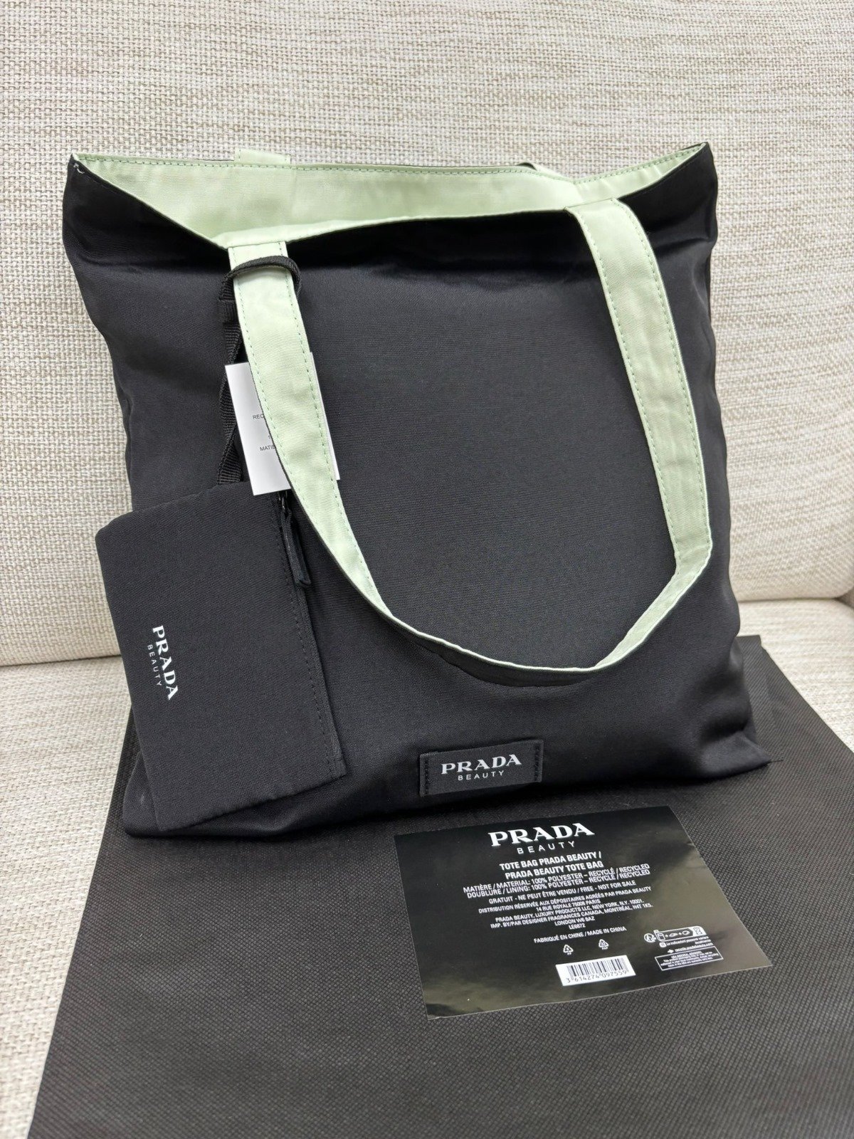 $130隻。 Prada Beauty雙面Tote bag 截單日:有單即落售完即止/ 11月23日2359 到貨日:預計11月尾 🤗一袋三用 🤗男士女士都可適🈴 🤗一面黑色一面薄荷綠雙面設計時尚簡單 🤗容量極大可放電腦等物品size37x36cm 🤗此乃是買香水滿額者獲贈的贈品