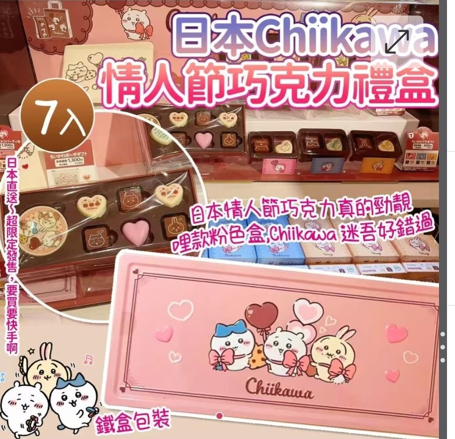 日本情人節d巧克力真的勁靚✨呢款粉色盒。Chiikawa迷唔好錯過🙈