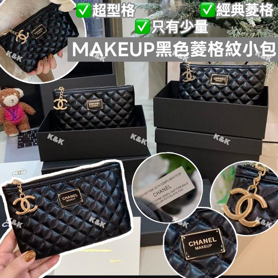 「MAKEUP」黑色菱格紋小包,是品牌為其VIP客戶或作為贈品推出的化妝包或手拿包。