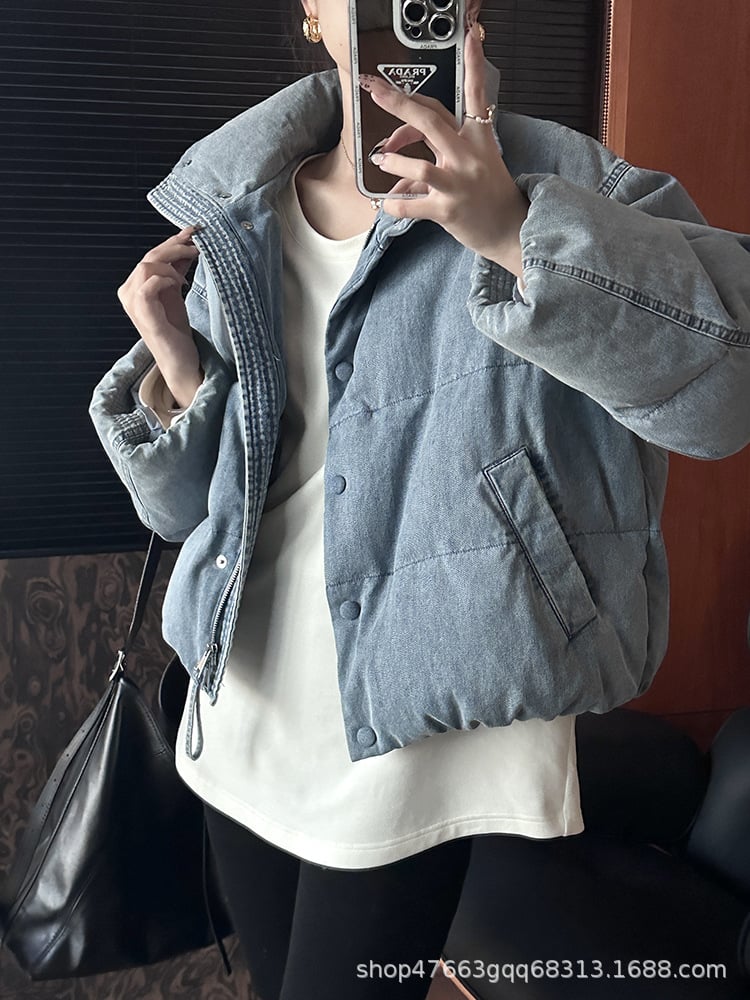 $138件。韓系牛仔藍羽絨棉外套|藍色|S-XL