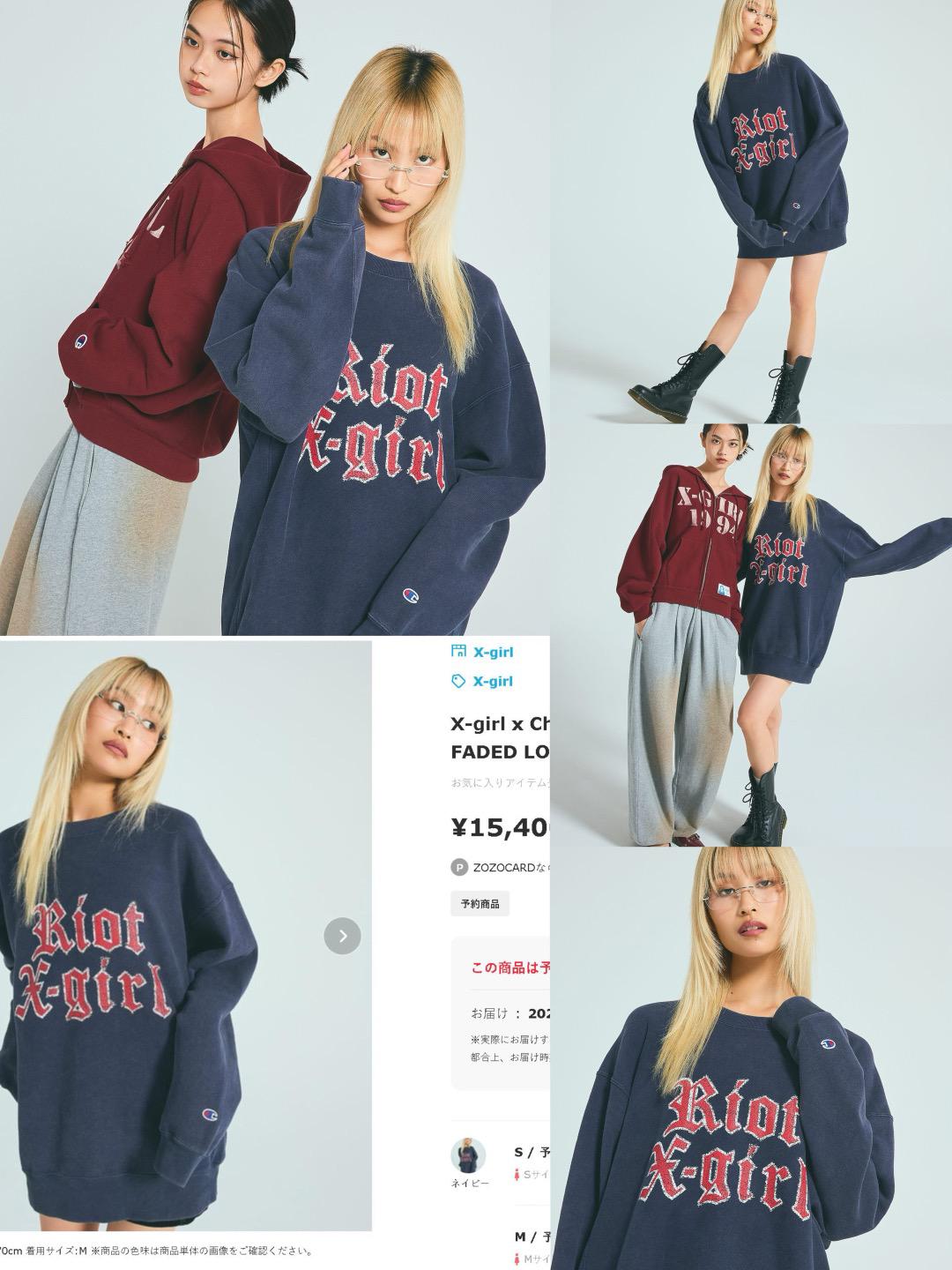 $138件。X-girl × Champion字母印花側拼長款衛衣