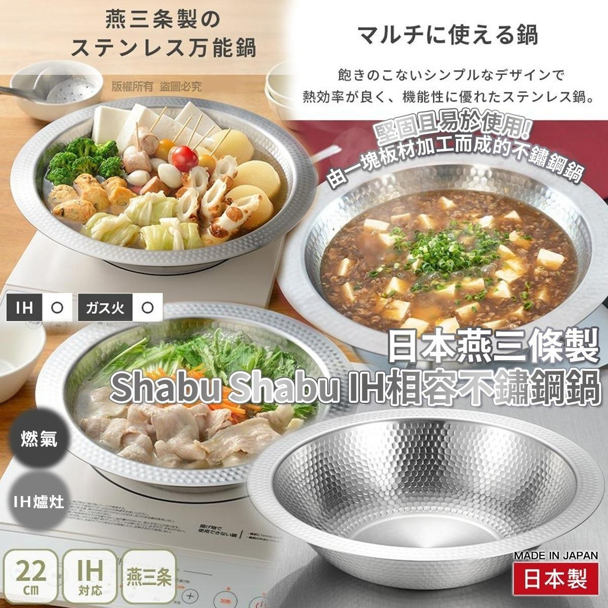 日本燕三條製-Shabu Shabu IH相容不鏽鋼鍋22cm