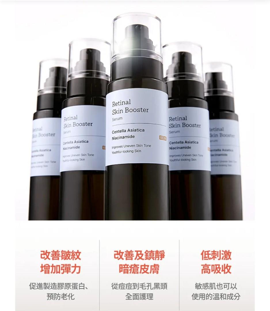 主要成分 該精華液含有視黃醛 (Retinal)、積雪草 (Centella Asiatica) 成分和菸鹼醯胺 (Niacinamide)。