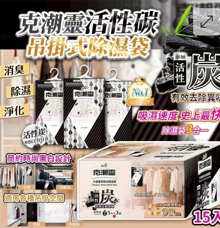 終於唔使再忍受屋企陣「噏」味!落雨天濕度爆燈,衣櫃啲衫摸落濕嗒嗒?衣櫃救星嚟啦!台灣克潮靈活性碳吊掛式除濕袋 (一盒15入),專門對付香港潮濕天氣!