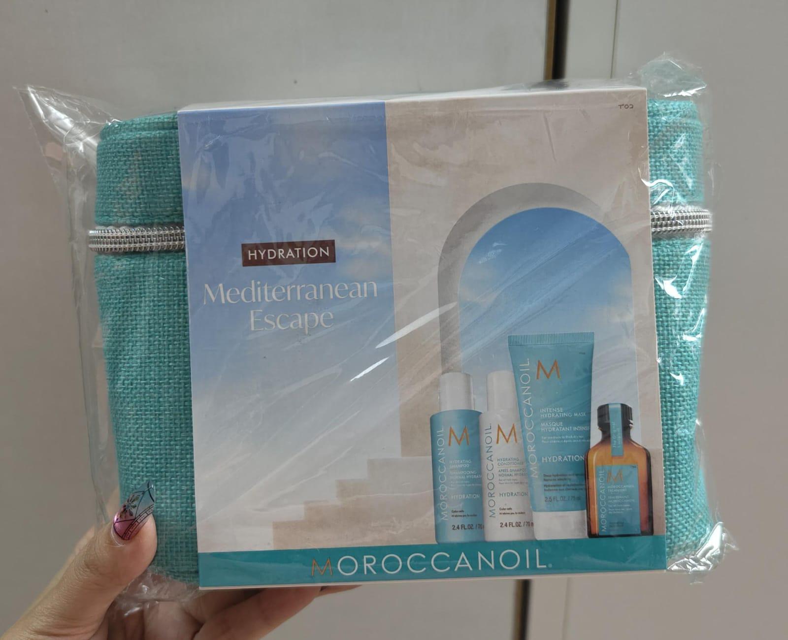 $145盒。2盒起135盒Moroccanoil摩洛哥小樣四件套 可選 保濕款HYDRTION 修復款REPAIR 水潤洗髮水70ml 水潤護髮乳70ml 精華髮膜75ml 摩洛哥順髮油25ml 算就在旅途也能給您的發頭一整套的殿堂級服務。攜帶方便,保潤濕發。超划算的套一旅行洗護套裝。,'