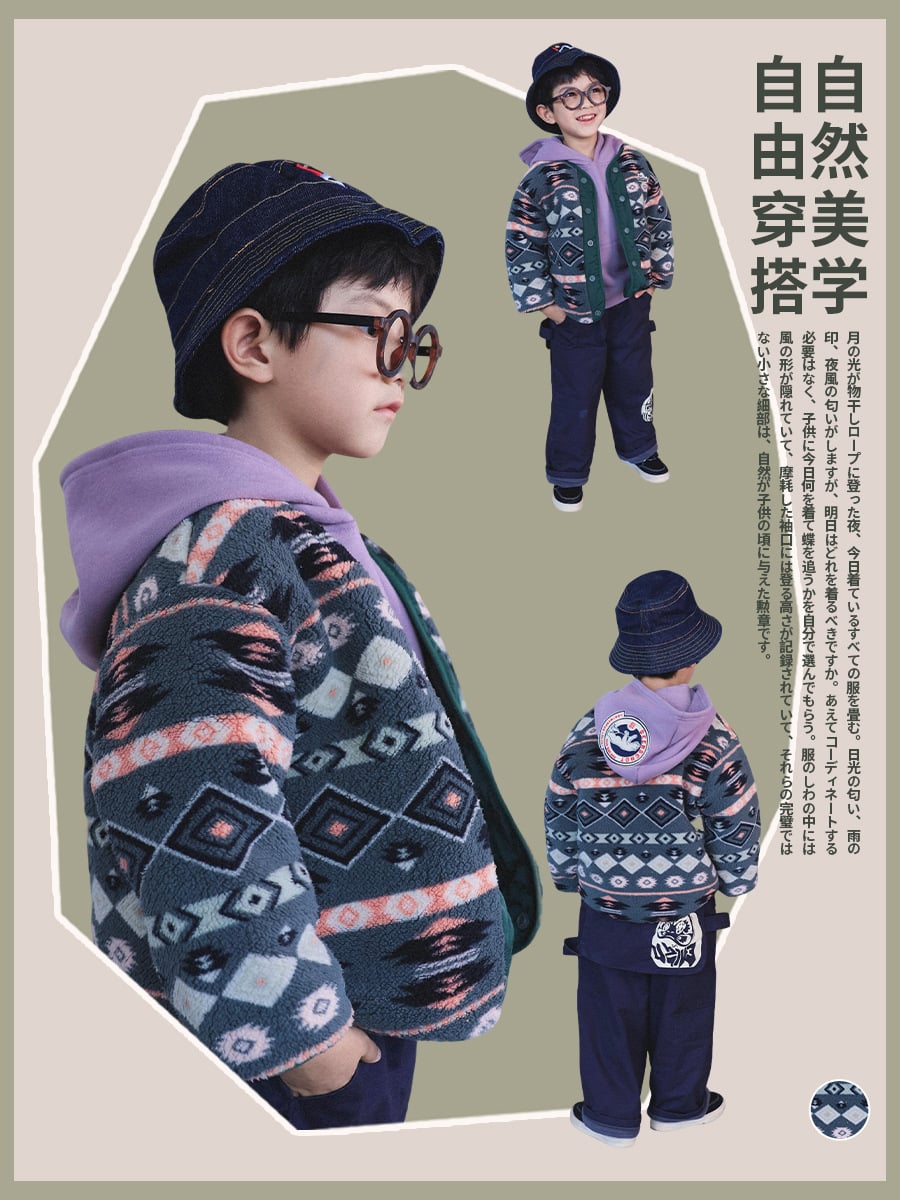 民族圖案搖粒絨布料,配上撞色包邊同按扣設計,日系感好濃,低調但好有特色 ✨