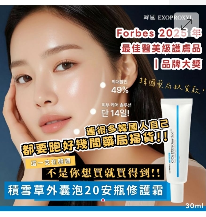 🔥🔥Forbes 2025 年最佳醫美級護膚品 | 🏆品牌大獎 🎎連韓國人都要跑好幾間藥局掃貨❗❗ 🌟韓國🇰🇷Exoproxyl CICA EXOSOmethod™積雪草外囊泡20安瓶修護霜30ml