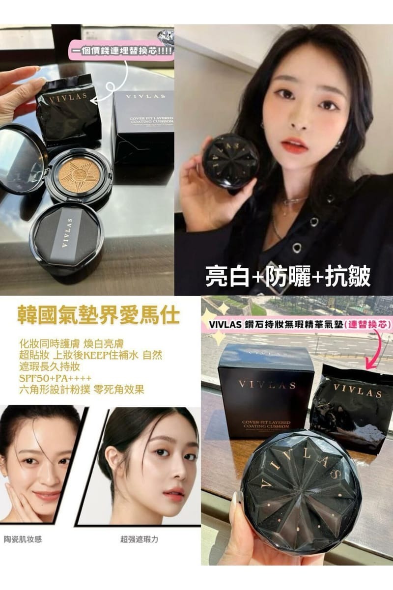 $148盒,2盒以上$138盒, 韓國VIVLAS💎鑽石持妝無瑕精華氣墊(連替換芯) -01Natural Beige (自然膚色) 氣墊界👏愛馬仕 輕鬆為你打造無瑕陶瓷肌 🏅高端氣墊排行榜連續第一位 遮瑕效果真係超勁👏👏👏👏 韓國代購/直播賣緊$389/盒😏😏😏網店優惠低至$15X/盒🤩🤩🤩 𝟑合𝟏 ✅美白+✅防曬+✅抗皺 ♥ 70%精華注入 化妝同時護膚 煥白亮膚 ♥ 超貼妝 上妝後Keep住補水 自然遮瑕長久持妝 ♥ SPF50+PA++++ ♥ 六角形設計粉撲 零死角效果 模仿噴墨印表機原理,每按壓一次釋放 500萬片超微米粉體,智能堆疊遮瑕力不增厚度: ✅ 首層:毛孔隱形膜 → 填補凹凸,打造平滑畫布(電子顯微鏡實測遮蓋92%毛孔) ✅ 中層:磁吸遮瑕網 → 自動吸附斑痘,遮瑕力=專業遮瑕膏 ✅ 外層:抗摩擦鎖妝膜 → 實測口罩摩擦8小時僅脫落7% 💎 黃金成分機能矩陣 核心成分 功效亮點 冰川水膠囊 接觸肌膚即爆水,保濕力+158% 山茶花抗氧化複合物 對抗自由基,12小時抗暗沉 藥用積雪草萃取 敏弱肌可用,上妝同時修護 📊 實測持妝成績單 ▸ 遮瑕力:黑眼圈/痘印/泛紅→ 單層遮蓋85% ▸ 抗汗力:38℃戶外流汗 → 紙巾按壓零脫妝 ▸ 持色力:帶妝10小時 → 明亮度僅下降0.5階 ▸ 透氣度:CO₂ 透氧率=素肌98%,拒絕悶痘 🌸 智能上妝情境指南 |偽素顏心機版| ❶ 粉撲按壓1次 → 全臉輕拍(打造原生好皮) ❷ 局部按壓第2層 → 瑕疵隱身術 |宴會級持妝版| ⭕ 搭配同系列定妝噴霧 → 挑戰火鍋局不脫妝 ⭕ 「三明治技法」:定妝噴霧→氣墊→再噴→持妝16小時 🌿 純淨貼心設計 ► 無酒精/礦物油/Parabens(致痘成分零添加) ► 防曬係數 SPF50+ PA++++|紫外線阻隔率99% ► 附抗菌粉撲+替換芯(性價比直接翻倍) 容量:14g*2ea(連替換芯) 🇰🇷MADE IN KOREA 截單日:12月8日12:00 預計到貨日:1月底