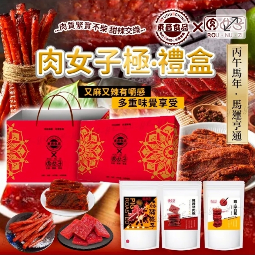 $155盒. 2盒或起$145盒. 台灣肉女子極‧禮盒 (一盒3味) ⛔截單日期:2025/12/20 06:00PM 📦預計貨到日: 2月頭 肉控必收!台灣肉女子極‧禮盒一次就將三款人氣豬肉零食打包,送禮自用兩相宜~ 🥓 炭香豬條子—原味 150g 炭火香氣濃郁,口感扎實,香氣一咬即爆,經典不敗! 🧀 起司豬肉乾 150g 濃郁起司與台灣豬肉完美結合,香味濃郁又不膩,入口層次超豐富! 🧄 圓‧厚到豬—蒜味 150g 蒜香四溢,厚切口感滿足感爆棚,一口咬下就是幸福感! ✨ 一盒三款,買好買滿買足 ✔ 適合聚會分享、辦公室零食、過年手信 ✔ 精美包裝送禮體面又實用 💥 台灣直送,新鮮美味即刻到手! -產地:台灣 -規格: 炭香豬條子-原味(袋)150g X 1 起司豬肉乾(袋)150g X 1 圓‧厚到豬-蒜味(袋)150g X 1 -保存期限:生產計起120天(銷售速度快,依場商出貨日為主) ==⚠️ 聲明 ⚠️== 1.本貨品為平行進口正貨。 2.所有帖文內容只作分享及參考用途。為免混淆視聽,所有商標或版權均屬有關商品品牌商標的持有人,敬請留意。 3.空運/海運有可能因各種不明因素影響而延誤到貨,所有貨品一經訂購後,如非廠家缺貨,不設取消/退貨/換貨。 4.貨品在運輸途中導致產品包裝外盒有任何損毀凹陷,但不影響其產品本身食用/使用,或有機會不預設外盒出貨,我司不會作任何更換或退款。 5.以上資料及外盒包裝只供參考,商品外盒原廠有更換新包裝權利,一切以實物為準。 6.顏色或因拍攝器材或顯示螢幕等因素而與實物有異,以上圖片及文字僅供參考,一切以實物為準。