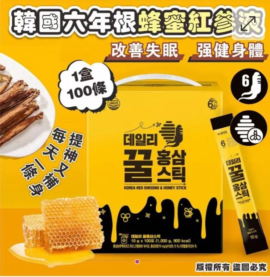韓國精選六年根蜂蜜紅蔘液 (1盒100條)