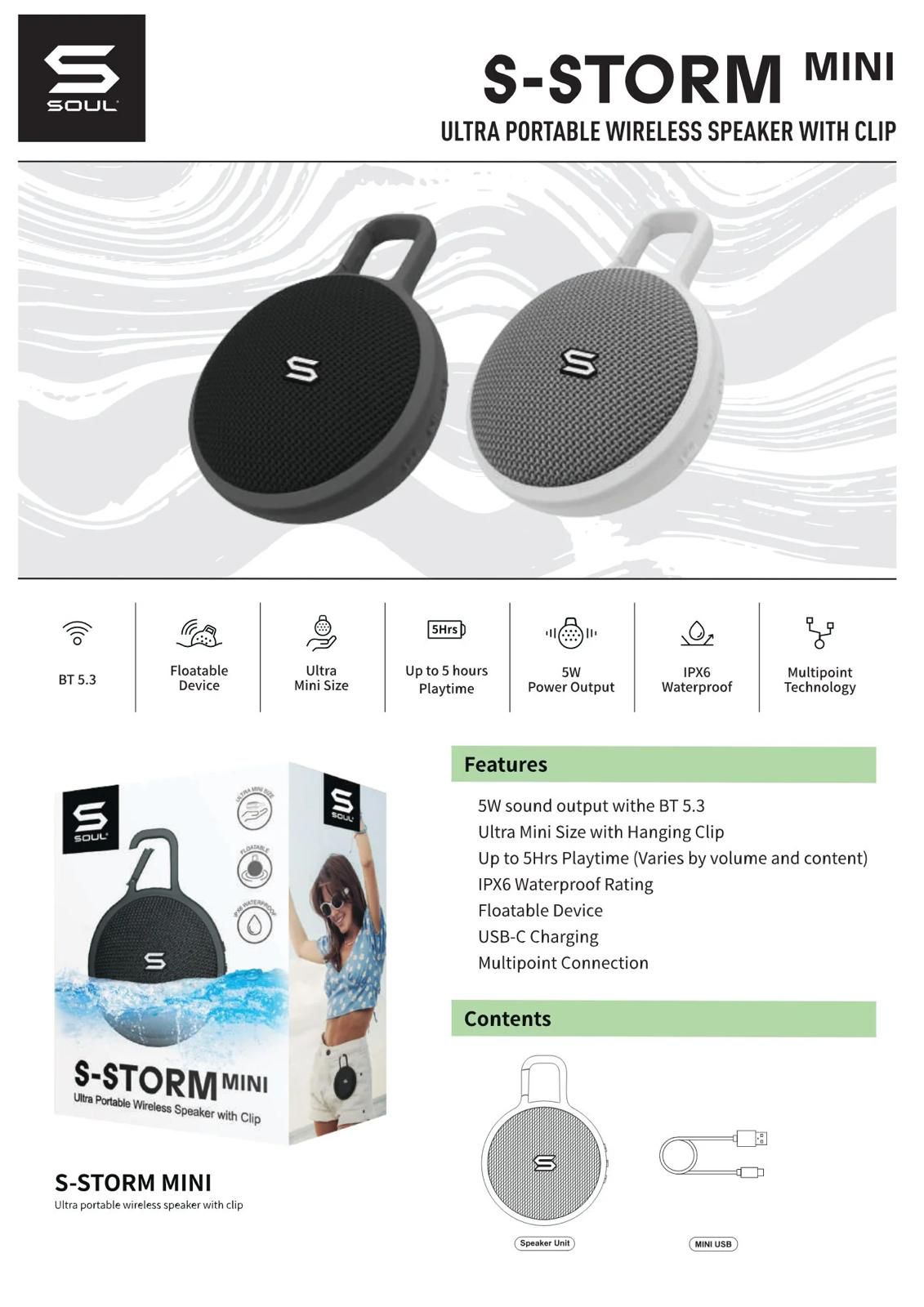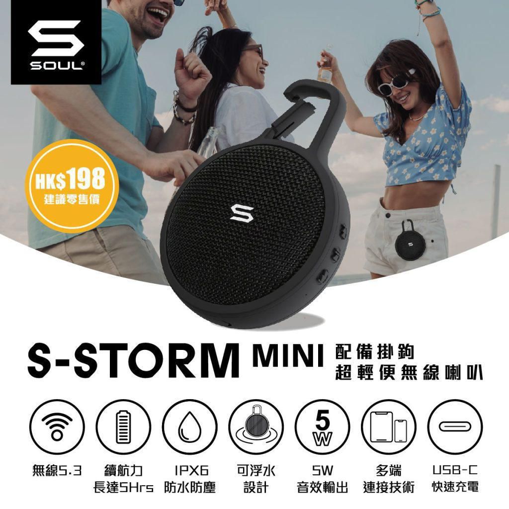 $158件。2件起$148件。 Soul Strom mini SS90 藍牙 5.3 無線音質:提供穩定的連接和高品質音效。 -播放時間:可持續使用長達 5 小時,適合隨時隨地享受音樂。 -IPX6 防水和可浮設計:防水性能卓越,適合戶外和水邊使用。 -保護硅膠套:增強耐用性,保護音箱不受損壞。 -USB-C 充電:快速充電,方便實用。 -多點連接:同時連接多個設備,輕鬆切換。 截單日:12月31日12:00 預計到貨日:3-4星期
