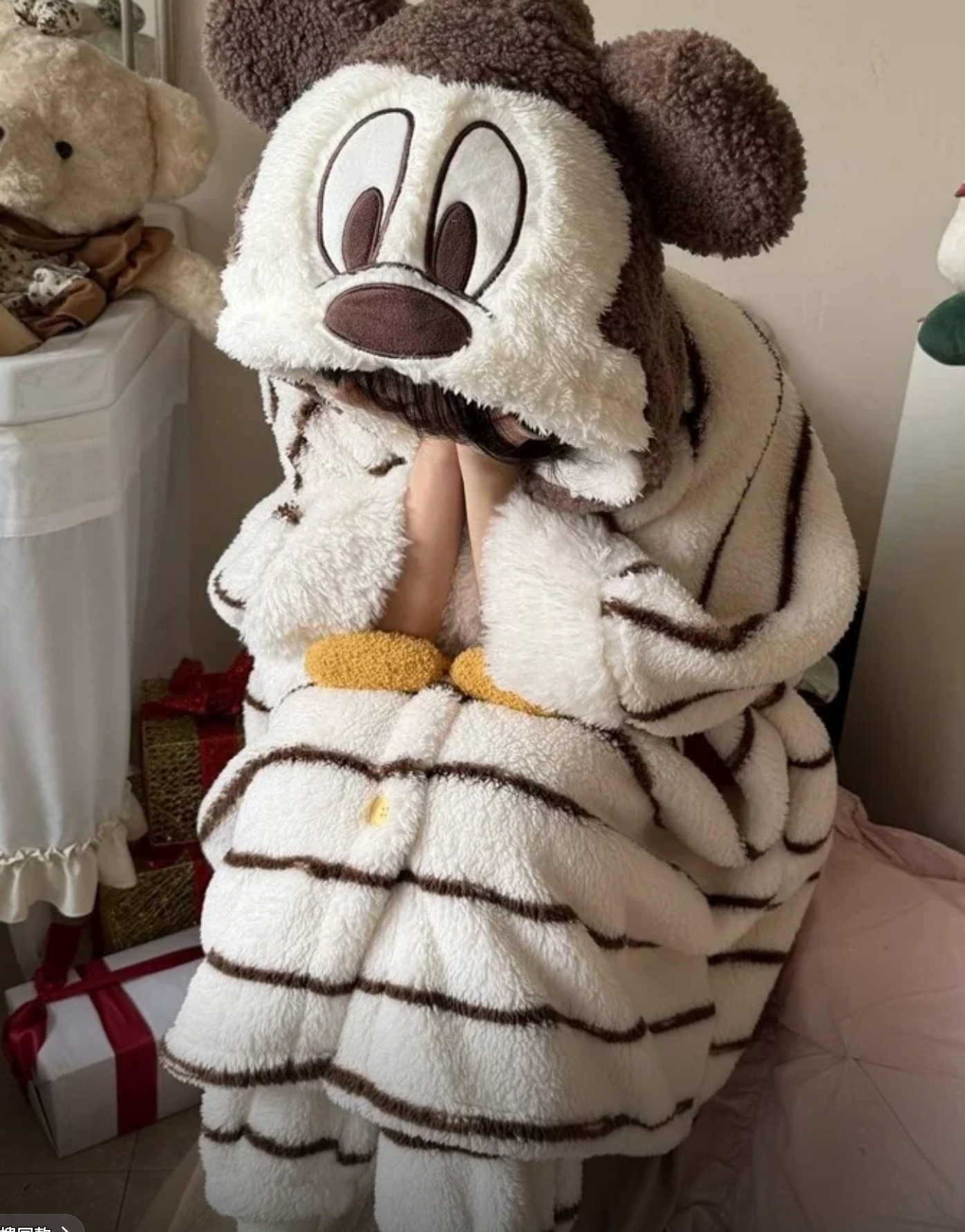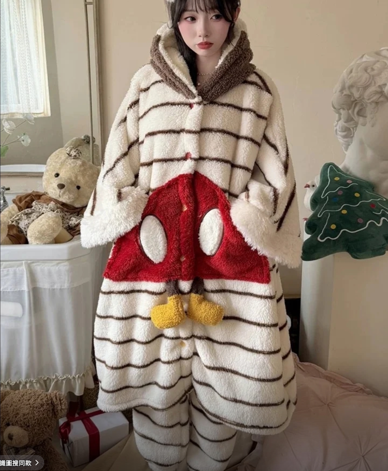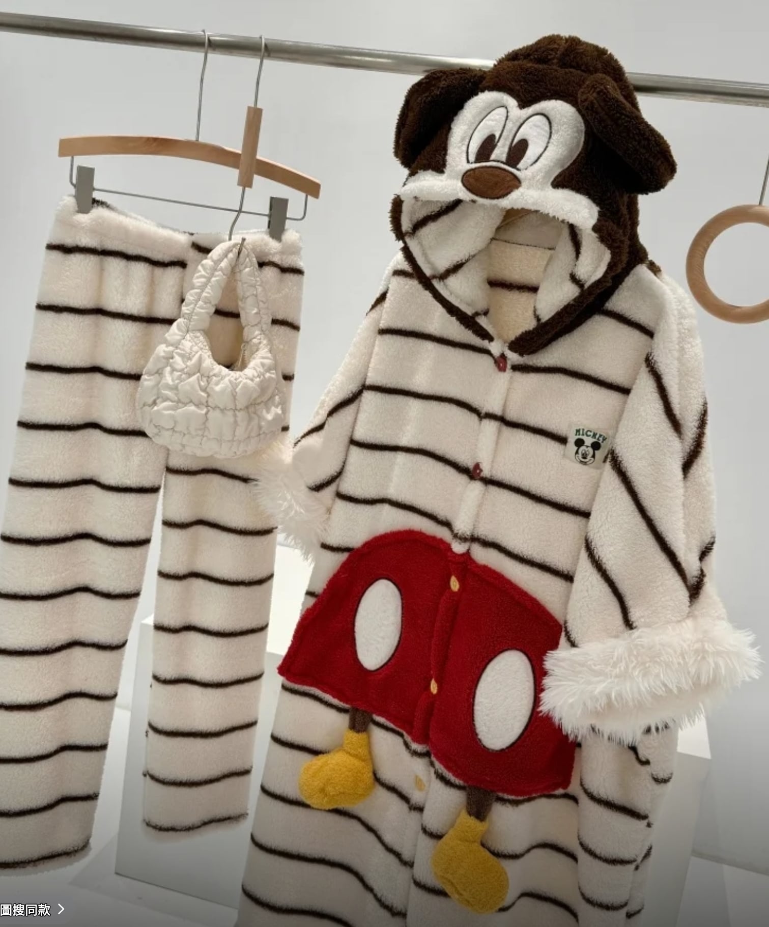 $158套。❌ 不包手袋(圖片僅作搭配示範)🐭✨ 超可愛米奇卡通連帽加厚珊瑚絨家居服套裝