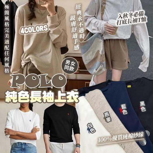 $160件。2件起$150件。POLO 純色長袖上衣 男女同款