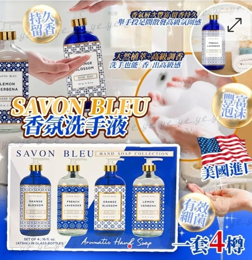 美國進口 SAVON BLEU 香氛洗手液 (一套4樽)