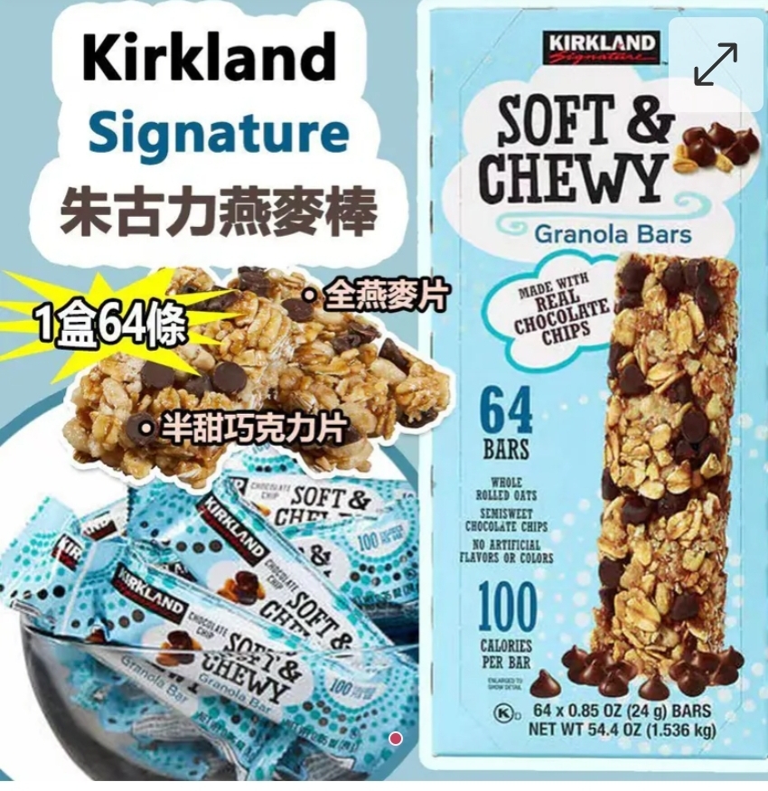 $165盒64條。 2盒或以上:$155盒. Kirkland Signature 朱古力燕麥棒(64條/盒) ⛔截單日期:2025/12/16 06:00PM 📦預計貨到日: 3月頭 巨無霸裝Kirkland Signature 朱古力燕麥棒有得賣啦!!😉😉 每條卡路里只有100!食多幾條都唔怕肥!😝😝 口痕減肥人士必備!!🙌🙌 呢款燕麥棒採用最優質既原料製作而成,真正朱古力同燕麥片既完美結合~🍫🫕 仲要食落好煙韌,唔似其他燕麥棒硬到咬唔開~😜😜 不含人工香料或色素,食得更放心啦~☘️☘️ 💜全燕麥片 💜半甜巧克力片 💜不含人工香料或色素 💜每條 100 卡路里 -規格:1盒64條,每條24g -美國進口 -到期日:2026年6月28日或之後 ==⚠️ 聲明 ⚠️== 1.本貨品為平行進口正貨。 2.所有帖文內容只作分享及參考用途。為免混淆視聽,所有商標或版權均屬有關商品品牌商標的持有人,敬請留意。 3.空運/海運有可能因各種不明因素影響而延誤到貨,所有貨品一經訂購後,如非廠家缺貨,不設取消/退貨/換貨。 4.貨品在運輸途中導致產品包裝外盒有任何損毀凹陷,但不影響其產品本身食用/使用,或有機會不預設外盒出貨,我司不會作任何更換或退款。 5.以上資料及外盒包裝只供參考,商品外盒原廠有更換新包裝權利,一切以實物為準。 6.顏色或因拍攝器材或顯示螢幕等因素而與實物有異,以上圖片及文字僅供參考,一切以實物為準。