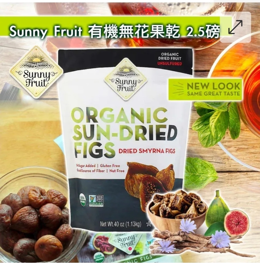 $168包.2包或以上:$158包.Sunny Fruit 有機無花果乾 2.5磅