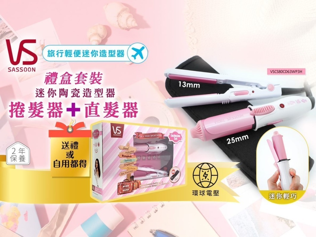 $168套。 Vidal Sassoon 沙宣 禮盒套裝 數量有限~售完即止‼️‼️ 約1~2weeks 超爆盤💥全新行保 Vidal Sassoon 沙宣 - 全球電壓25mm陶瓷捲髮器 + 13mm陶瓷纖巧直髮器禮盒套裝 (Model: VSCS80CD63WP3H ) *一套有哂兩樣野* *一套有哂兩樣野* *一套有哂兩樣野* 適合世界各地使用,迷你設計,方便收存,送禮或自用,出外旅行造型必備神器! 🌟VS *25mm* 陶瓷捲髮器 顏色:白色 環球電壓,適合世界各地使用 150℃溫度設定輕易塑造造型 快熱設計,瞬間造型 可轉動電源線,不易纏繞 2 年產品保養 🌟VS *13mm* 陶瓷纖巧直髮器 顏色:白色 環球電壓,適合世界各地使用 13毫米陶瓷直髮板,溫和營造光亮直髮效果 200℃溫度設定及快熱設計,瞬間營造光亮直髮效果 迷你設計,方便收存 2 年產品保養 香港行貨 兩年保用