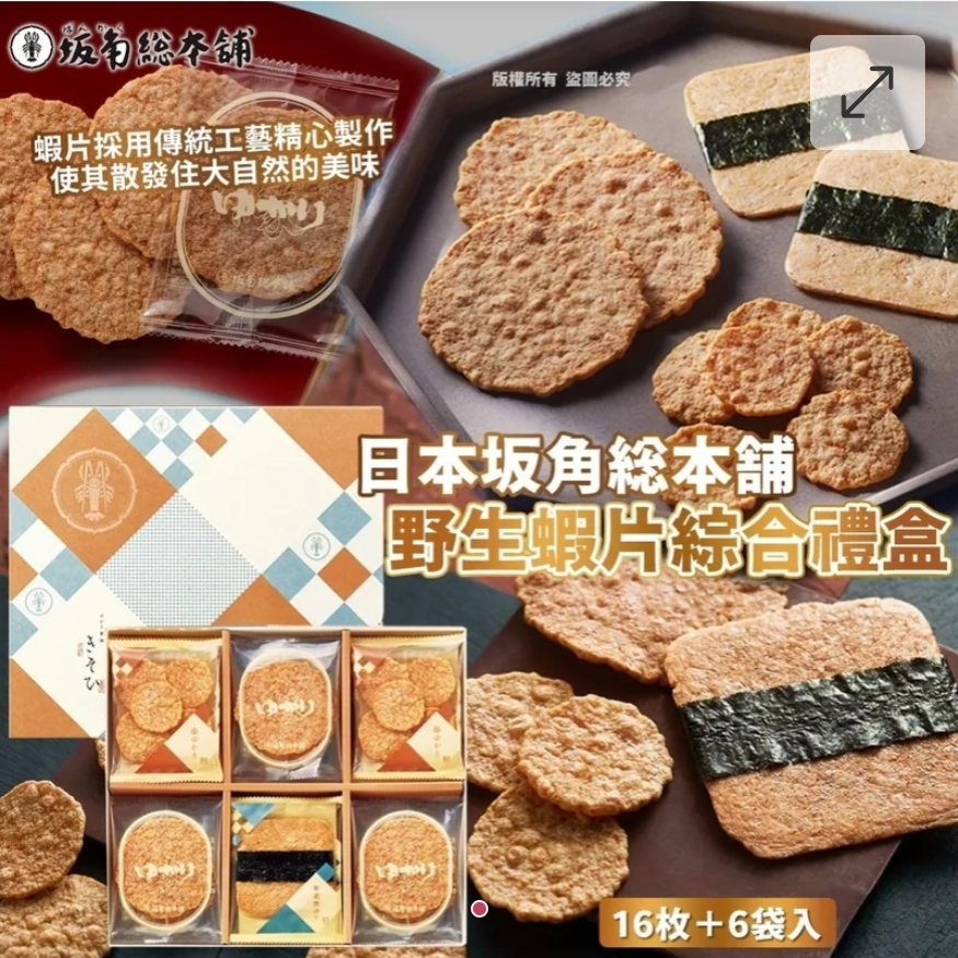 $168盒.2盒或以上$158盒.日本坂角総本舗-野生蝦蝦片綜合禮盒(16片+6袋)