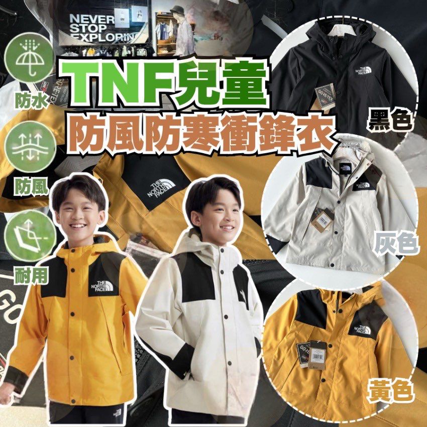 $178件。 TNF 兒童防風防寒衝鋒衣 3-4wks 【T*NF 兒童防風防寒衝鋒衣|冬日探險・暖心守護!】🌟 冬天寒風來襲,都想小朋友玩得開心又唔怕凍親?❄️ 呢件T*NF兒童衝鋒衣採用靜波緞覆膜面料,內裡搭配蓄熱搖粒絨,防風防寒功能一流,等小朋友可以盡情探索冬日世界~✨ 🌈 顏色選擇:黃色💛、黑色⚫、灰色🌫️ 📏 尺碼詳情(單位:cm): 120#:衣長53|胸圍88|袖長41 130#:衣長56|胸圍92|袖長44.5 140#:衣長60|胸圍97|袖長48 150#:衣長64|胸圍102|袖長51.5 160#:衣長68|胸圍107|袖長55 170#:衣長72|胸圍112|袖長58.5 ✅ 靜波緞覆膜面料,強效防水防污 ✅ 內裡蓄熱搖粒絨,鎖住溫暖 ✅ 魔術貼袖口,防風設計更貼心 ✅ 多處品牌刺繡,細節滿分 ✅ 男女同款,百搭易襯 ==⚠️ 聲明 ⚠️== 本貨品為平行進口 所有帖文內容只作分享及參考用途。為免混淆視聽,所有商標或版權均屬有關商品品牌商標的持有人,敬請留意 ⭕顏色或因拍攝器材或顯示螢幕等因素而與實物有異,以上圖片及文字僅供參考,一切以實物為準 ⭕外國進口貨品之貨期或受船運/空運延誤影響,恕不接受貨期延誤原因取消訂單,下單前敬請諒解
