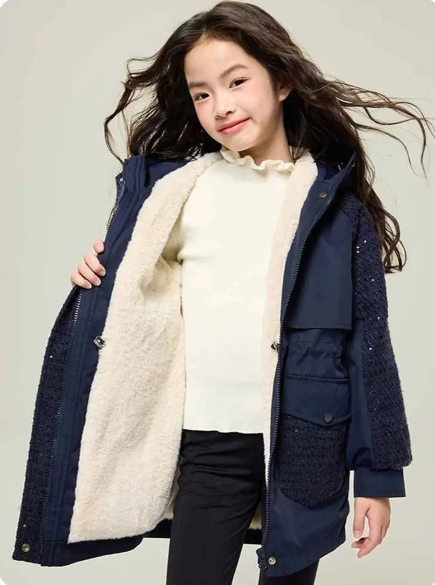 $188件。2件起$178。件 🧥【韓系閃亮加絨連帽外套】✨ 🧥【韓系閃亮加絨連帽外套】✨ 尺寸:110–170cm 顏色:深藍色 Navy ✨ 產品特色 🌟 加絨保暖內層:內裡柔軟加絨,保暖度滿分,寒冬也能舒適穿! 👧 韓系氣質設計:結合呢料與布面拼接,細緻閃片點綴,低調中帶亮點。 🧢 立體剪裁+連帽造型:既能防風保暖,又凸顯時尚層次感。 🎒 多口袋設計:實用又美觀,方便收納小物。 🧶 舒適袖口:彈性設計防風保暖,活動自如不緊繃。 💙 穿搭建議 配搭legging或牛仔褲,簡單又時尚~ 可搭運動鞋👟或靴子👢,展現韓系小潮童風格! #韓系童裝 #加絨外套 #保暖連帽外套 #女童冬季新品 #閃片拼接 #時尚保暖