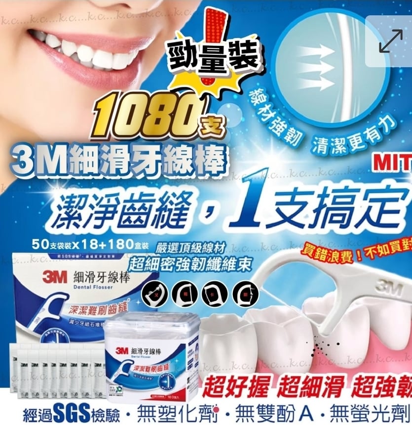 🦷✨ 台灣製 3M 細滑牙線棒 1080支 (單線藍盒) 開團啦!