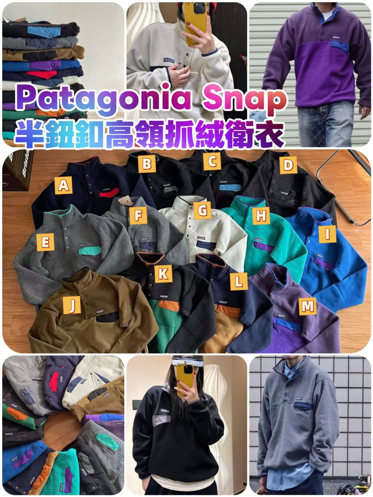 $198件。2件起$185件。 保暖透氣🔥Patagonia Snap半鈕釦高領抓絨衛衣 3-4wks 日本山系・保暖透氣 勁靚‼️☃️⛩呢件著去凍嘅地方旅行好保暖又有型~~🌈仲有咁多款顏色揀添‼️ 點解個個都必須擁有一件Snap?🤔 因為真係太好著啦!呢件半鈕釦高領抓絨衛衣採用經典Synchilla®️搖粒絨面料,厚實得嚟又輕盈,保暖抗風一流👏 無論做中間層定外著都得,仲有復古撞色設計,日系感即刻出曬嚟~✨ ✅ 雙面抓絨面料 - 柔軟舒適快乾,保暖唔臃腫 ✅ 半鈕釦高領設計 - 領口可以翻落嚟,兩著設計超靈活 ✅ Y型袖子剪裁 - 360度活動無障礙,入面著多幾件都唔拘束 ✅ 彈力袖口下擺 - 防風耐用,點洗都唔易變形 ✅ 復古撞色門襟 - 尼龍裝飾條+暗扣,細節感滿分 📌顏色:A / B / C / D / E / F / G / H / I / J / K / L / M 📌尺碼表(cm): S碼)衣長68 胸圍62 肩寬50 袖長60 M碼)衣長70 胸圍64 肩寬52 袖長62 L碼)衣長72 胸圍66 肩寬54 袖長64 XL碼)衣長74 胸圍68 肩寬56 袖長66 (手工測量會有1-3cm誤差) ==⚠️ 聲明 ⚠️== 本貨品為平行進口 所有帖文內容只作分享及參考用途。為免混淆視聽,所有商標或版權均屬有關商品品牌商標的持有人,敬請留意 ⭕顏色或因拍攝器材或顯示螢幕等因素而與實物有異,以上圖片及文字僅供參考,一切以實物為準 ⭕外國進口貨品之貨期或受船運/空運延誤影響,恕不接受貨期延誤原因取消訂單,下單前敬請諒解