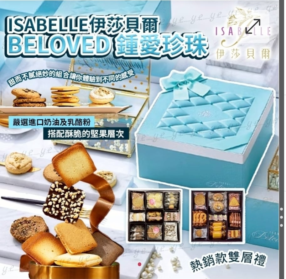 $198盒。2件起$108件 ISABELLE伊莎貝爾 Beloved 鍾愛珍珠 ⛔截單日期:2025/12/18 06:00PM 📦預計貨到日: 2月頭 💎 ISABELLE 伊莎貝爾 Beloved 鍾愛珍珠|一盒把“優雅”變成禮物的精品禮盒 香奈兒曾說:「沒有珍珠的女人不能稱為女人。」 因為珍珠,是優雅的象徵,是品味的延伸,是一生的浪漫。 《鍾愛珍珠禮盒》以 “整顆珍珠” 作為主角, 不是一般貼上半顆珍珠,而是以打釘工藝固着整顆渾圓珍珠於布繃錦盒頂端。 每一層,每一款點心,都像珠寶盒裡的寶石💎 🍪【上層|細緻與香氣的輕奢組曲】 ✔ 香榭薄餅(巧杏角 / 白巧克戀人) ✔ 法點酥(奶油 / 椰絲巧克) ✔ 法式煎餅 – 巧克杏仁 ✔ 手製餅乾(咖啡果麥片 / 錫蘭紅茶) ✔ 湖鹽起士雪球(罐裝) ✔ Icebox 心型圈 🍰【下層|濃度、層次、甜感都更升級】 ✔ 香榭薄餅(香草) ✔ 法點酥(椰奶香絲 / 阿薩姆 / 雙色芝麻 / 黑椒起士) ✔ 白蘭地葡萄三明治 ✔ 法式薄燒 – 伯爵茶 ✔ 戀戀金莎 / 法巧果香 ✔ 風味水果糖 -產地:台灣 -規格:542g(不含盒重) -保存期限:商品銷售速度快,依實際出廠為主。 -保存方式:避免陽光直射,請置於陰涼乾燥。 -過敏原資訊: ※本產品含麩質之穀物、牛奶、蛋、大豆及其製品,不適合其過敏體質食用。 ※本產品與其它含有魚類、亞硫酸鹽、芒果、堅果與芝麻種子的產品於同一工廠生產,食物過敏者請留意。 ==⚠️ 聲明 ⚠️== 1.本貨品為平行進口正貨。 2.所有帖文內容只作分享及參考用途。為免混淆視聽,所有商標或版權均屬有關商品品牌商標的持有人,敬請留意。 3.空運/海運有可能因各種不明因素影響而延誤到貨,所有貨品一經訂購後,如非廠家缺貨,不設取消/退貨/換貨。 4.貨品在運輸途中導致產品包裝外盒有任何損毀凹陷,但不影響其產品本身食用/使用,或有機會不預設外盒出貨,我司不會作任何更換或退款。 5.以上資料及外盒包裝只供參考,商品外盒原廠有更換新包裝權利,一切以實物為準。 6.顏色或因拍攝器材或顯示螢幕等因素而與實物有異,以上圖片及文字僅供參考,一切以實物為準。