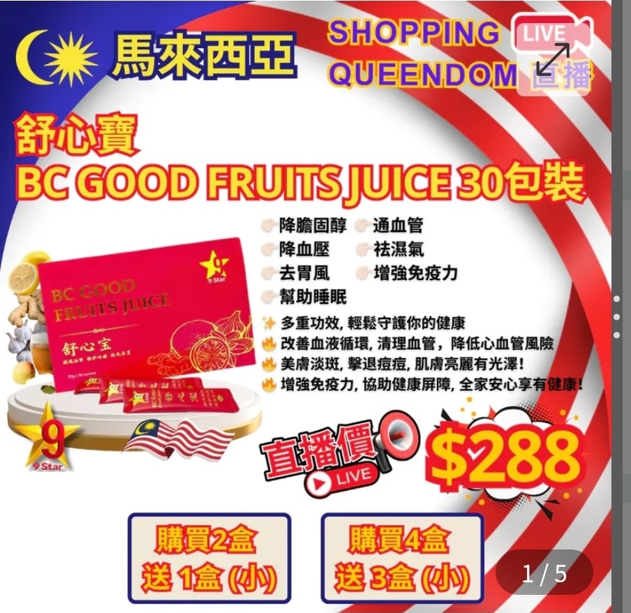 $215盒30包。2盒起$199盒。 馬來西亞 [M03] 舒心寶 BC GOOD FRUITS JUICE 30包裝 原價$ 288盒 截/10月17 到/11月尾 🌟【舒心寶:健康無憂,全面守護你的身體! 】🌟 💥 身體出現小毛病?腰酸背痛、胃脹氣、脂肪肝、三高問題來纏身? 【舒心寶】天然配方,為你提供全方位的照顧,讓你從裡到外感受健康新生活! 💪🍃 ✨ 四大天然成分,健康效果看得見 🍋 檸檬:清理血管,穩定三高,改善心臟、腦血管健康 🧄 蒜蓉:暖宮護體,增強免疫力,預防肺部發炎 🍏 蘋果醋:調理腸胃,預防胃酸倒流,胃舒服整天 🌶 薑蓉:促進代謝,改善血液循環,緩解腰酸背痛 ✨ 多重功效,輕鬆守護你的健康 🔥 改善血液循環,清理血管,降低心血管風險 🔥 美膚淡斑,擊退痘痘,肌膚亮麗有光澤! 🔥 增強免疫力,協助健康屏障,全家安心享有健康! 👉🏻降膽固醇 👉🏻通血管 👉🏻降血壓 👉🏻祛濕氣 👉🏻去胃風 👉🏻增強免疫力 👉🏻幫助睡眠 🍵服用方法: 每次1大湯匙,可以加入半杯溫水開來喝,或是直接吃都可以。 👉🏻保健用 一天早上一次。 👉🏻膽固醇和三高 每天2次。早上、中午或晚餐後各一次。 👉🏻血管堵塞 每天3次,早餐後/午餐後/晚餐後 成分:蒜,薑,檸檬,蘋果醋 *無防腐劑 *無化學成分 *儲存冰箱/陰涼處