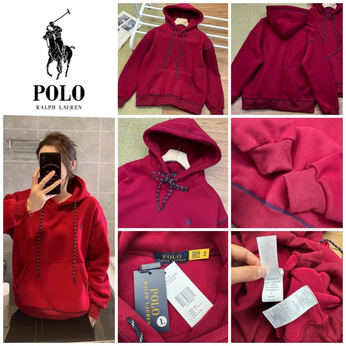 RL Po*lo 明線小馬刺繡加絨連帽衛衣🍷酒紅色
