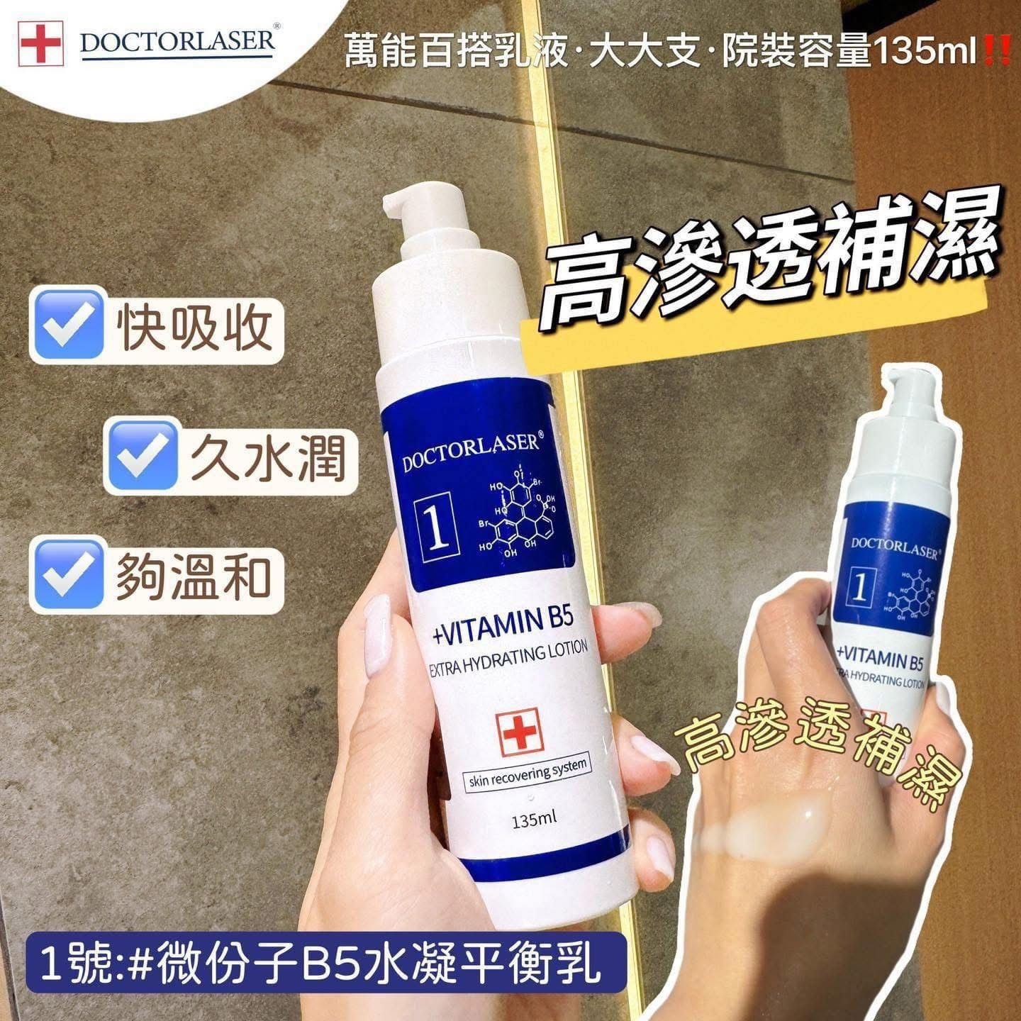 $248支。2支起$238支。 美國🇺🇸#Doctorlaser 1號:#微份子B5水凝平衡乳 約3-4 weeks 【推開化水🔥⭐️萬能百搭乳液|新品出場‼️】 美國🇺🇸#Doctorlaser 高純度玻尿酸系列 【醫美診所醫生配方,院線專用產品】 ⭕️乾皮怕乾燥⭕️油皮怕油膩⭕️敏皮怕刺激 ⭐️萬能百搭乳液·大大支·院裝容量135ml‼️ ✅快吸收✅久水潤✅夠溫和! 適合所有膚質(針對:偏油·易痘·敏弱肌) ⚠️經常出油,又容易覺得乾燥,紅血絲明顯的油敏皮!!正在長痘期的脆弱敏感肌! ·軟化角質,細緻毛孔,協助調理肌膚水油平衡的最佳狀態,大分子B5形成鎖水膜,鎖住水份不流失!低分子B5再深入肌底提升彈力,雙管齊下,精準保濕~!!💧💦 1號:#微份子B5水凝平衡乳 (高滲透補濕) 📌 質感:精華和乳液之間·推開化水 💧納米微粒技術,清爽輕透,易於吸收 💧沒有油膩厚重感,輕盈補濕一抹化水,秒速吸受 💧激活肌底,加強肌膚吸收力 ⭐️高濃度維他命b5 ·深層保護屏障免受傷害,增強彈性和柔軟度 .長效鎖水,保持水潤柔嫩 ⭐️3重神經酷胺 1、3、6 II 修復受損屏障,增強鎖水屏障鎮靜皮膚和抗炎!