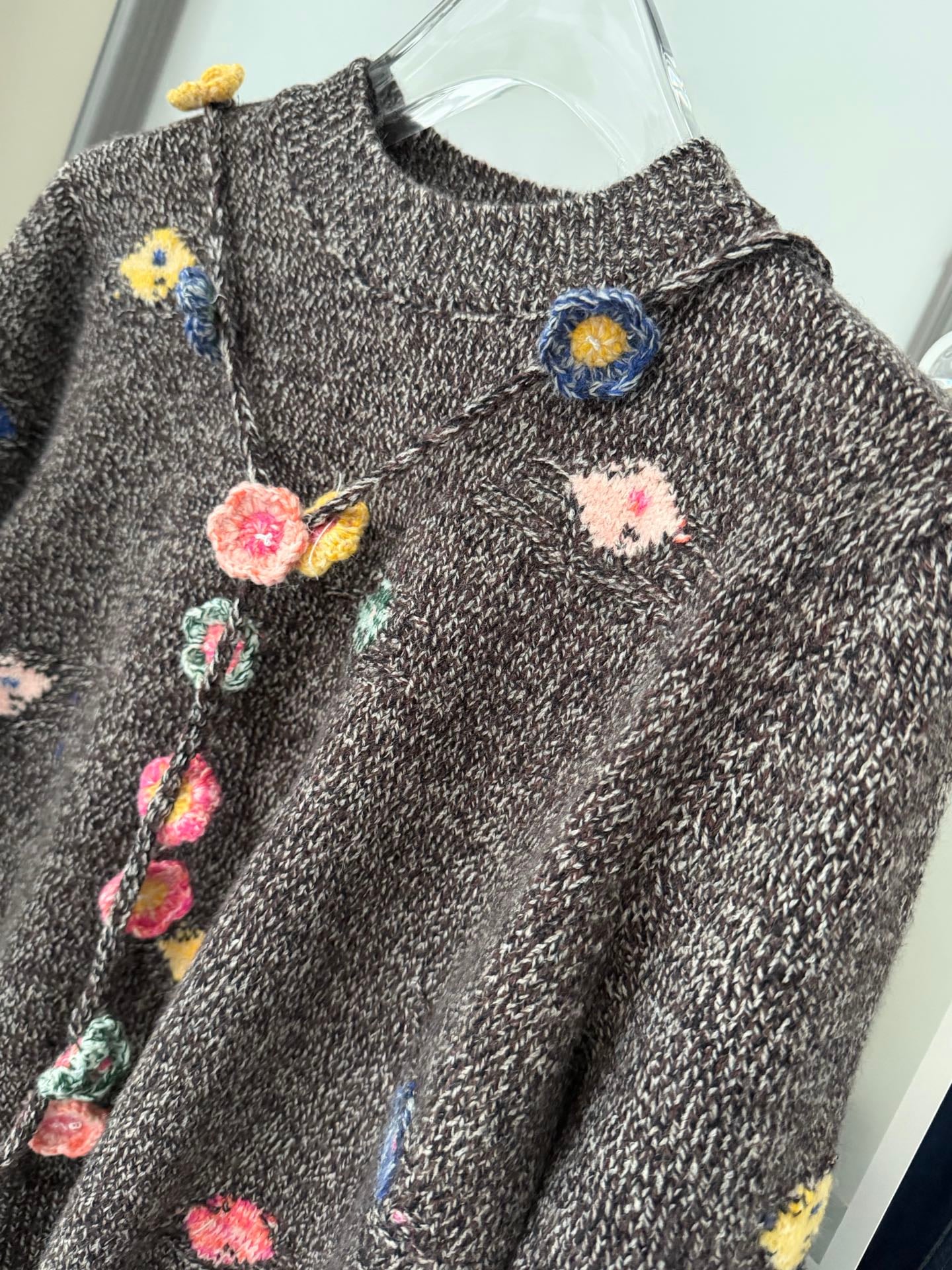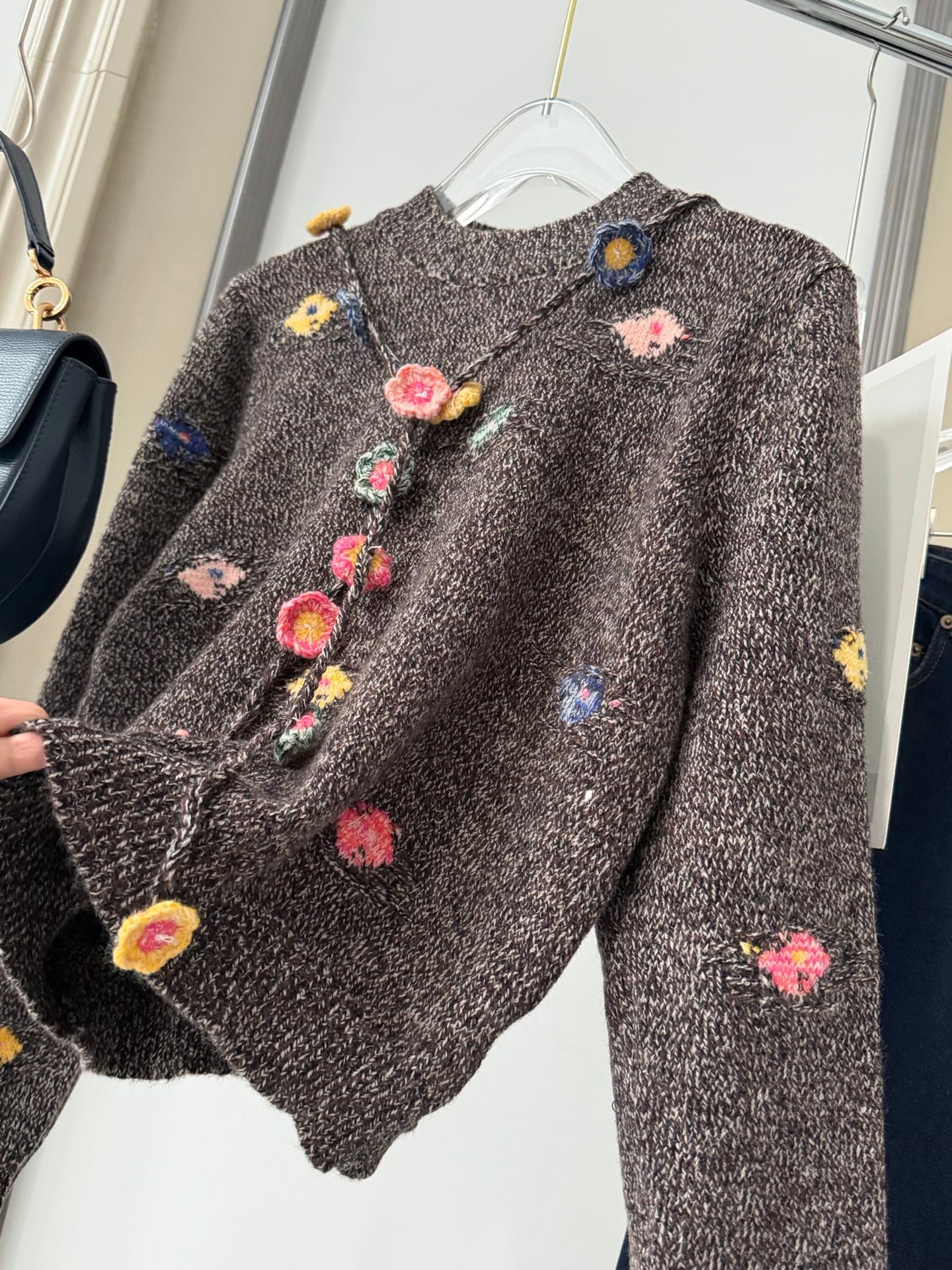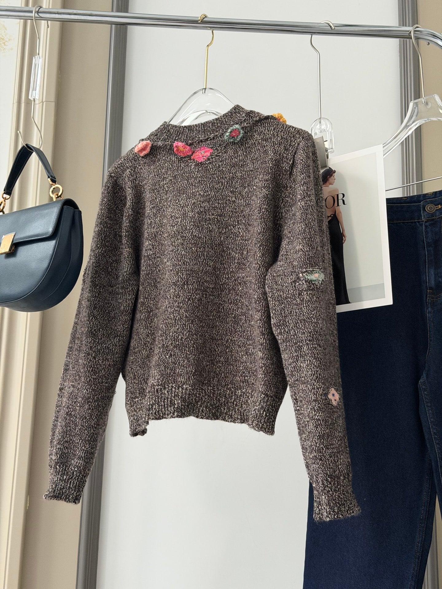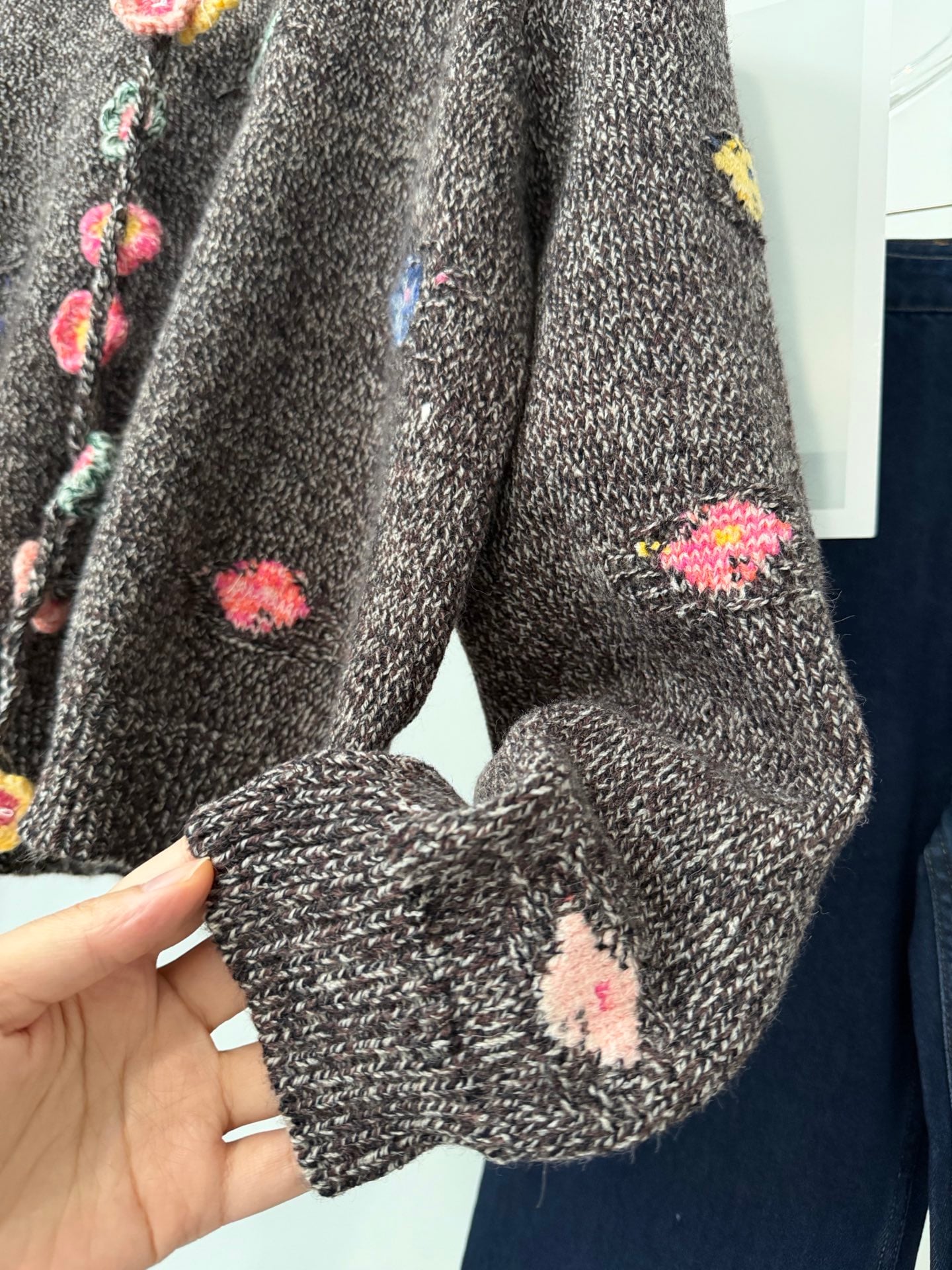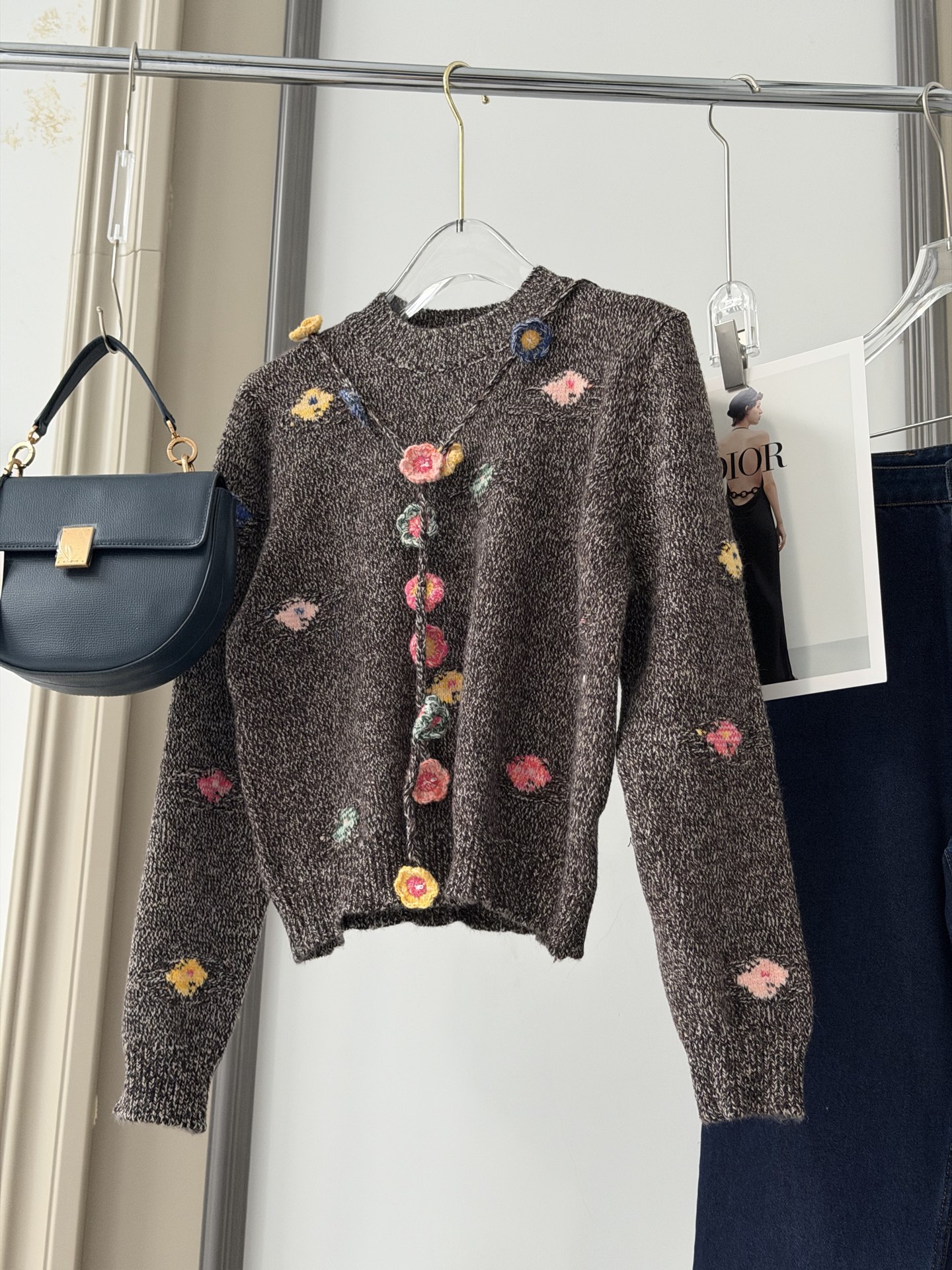 復古花朵刺繡針織上衣/開襟外套(兩著款)