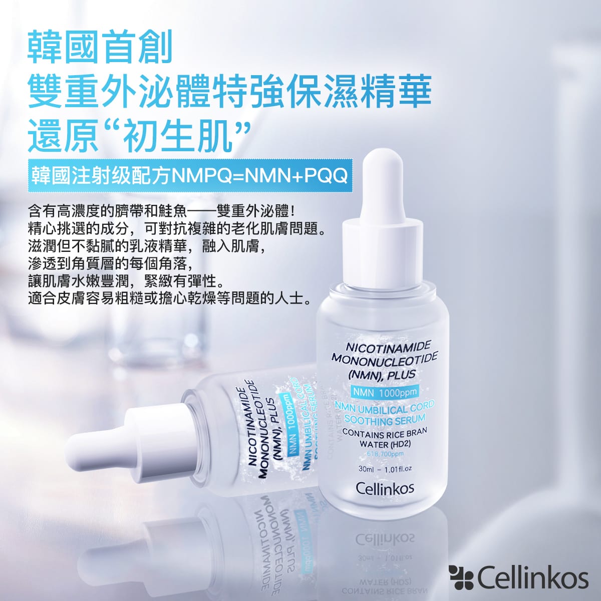 $265套。2套起$255套。 Cellinkos ‘神蹟初生肌’外泌體N+P 原液精華 1套2支 😱韓國首創及聯合整型外科醫院開發 #1000ppm NMPQ #双重外泌體特強保濕精華 💧還原"初生肌"限定高定SK Xx御用去除黑色素,提亮美白,米糠水技術含量高達61.8%還原初生傳統技術💓 ,可以令細胞自動追蹤,製造保濕再生緊緻因子及修復因子,諾貝爾大獎嶄新技術👍江南多間醫院高端注射性配方,用完效果驚人👍 1000PPm NMN系列再升級,加入PQQ,雙重抗老成分,有效增長細胞粒線體長度,讓肌膚逆齡生長。韓國注射级配方NMPQ=NMN+PQQ 外泌體‘初生肌’精華 30ml 含有高濃度的脐带和鮭魚——雙重外泌體! 精心挑選的成分,可對抗複雜的老化肌膚問題。 滋潤但不黏膩的乳液精華,融入肌膚,滲透到角質層的每個角落,讓肌膚水嫩豐潤,緊緻有彈性。 適合皮膚容易粗糙或擔心乾燥等問題的人士。 「外泌體」作用於多種老化跡象的三種作用 ■ 賦予肌膚緊緻光澤:調理肌膚底子,賦予肌膚角質層反彈的彈性和緊緻,呈現光澤、年輕的外觀。 ■調整肌膚週期:當肌膚週期被打亂時,就會出現各種肌膚問題。調整肌膚週期,保持肌膚美麗。 ■追蹤一切即將出現問題:即使小心謹慎,肌膚也會因壓力、紫外線、外在環境等各種因素而受損。為受損未現肌膚問題提供全面護理,打造健康美麗肌膚。 號 如何使用 早,晚,洗臉並塗抹爽膚水後,取適量並讓其吸收到皮膚中。 韓國製 #NMN #NMN #PQQ #NMPQ外泌體保濕精華 #雙重外泌體#外泌體 #外泌體精華