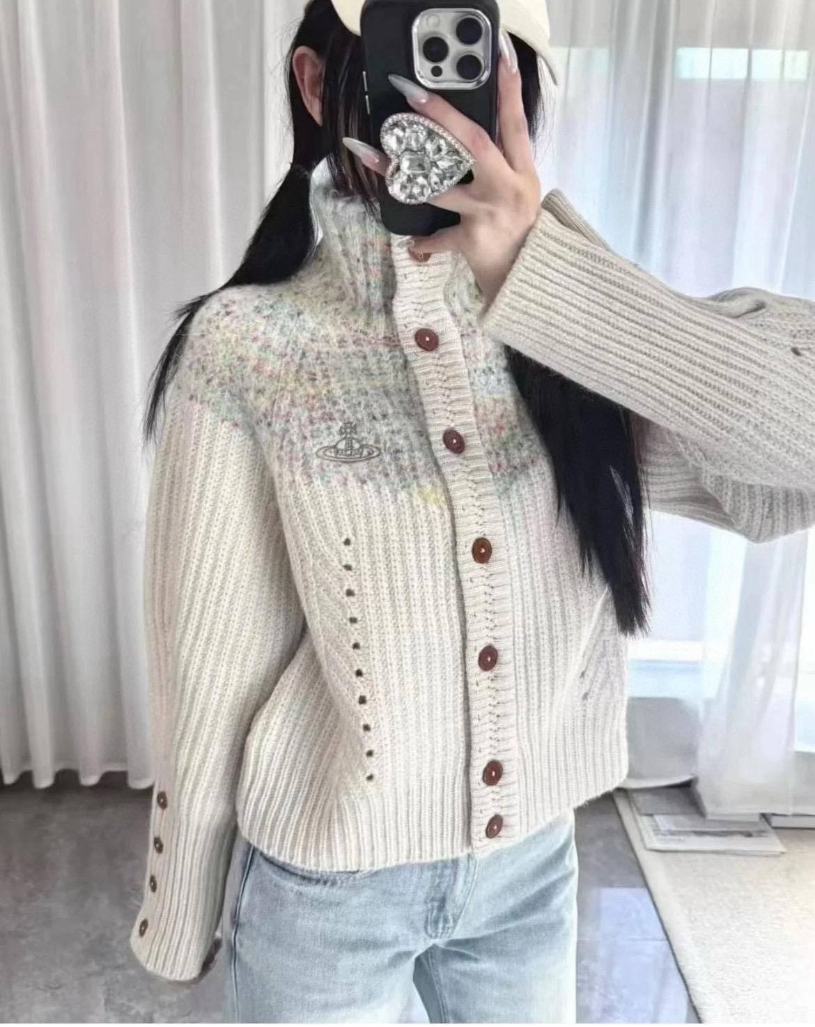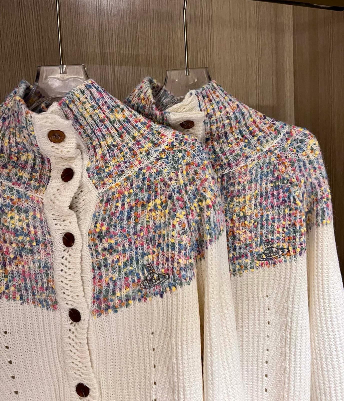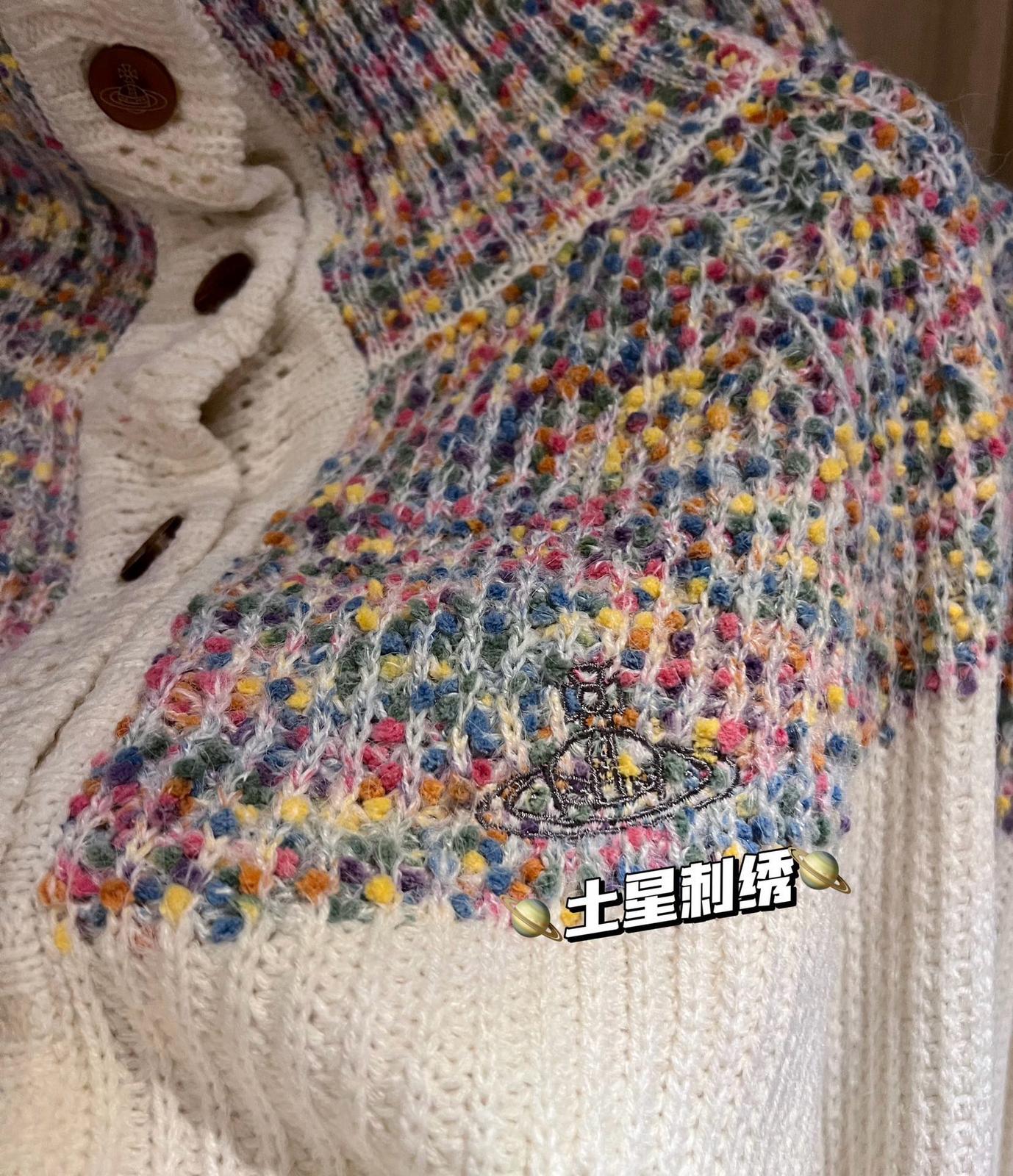 $268件。 西太后土星🪐復古拼接針織衫 ⏱貨期:3-6星期 🏳️🌈Colour : 彩虹拼接 𝐒𝐈𝐙𝐄 📏 : M/L M碼:衣長54胸圍104連肩袖長73 L碼:衣長56胸圍106袖長75