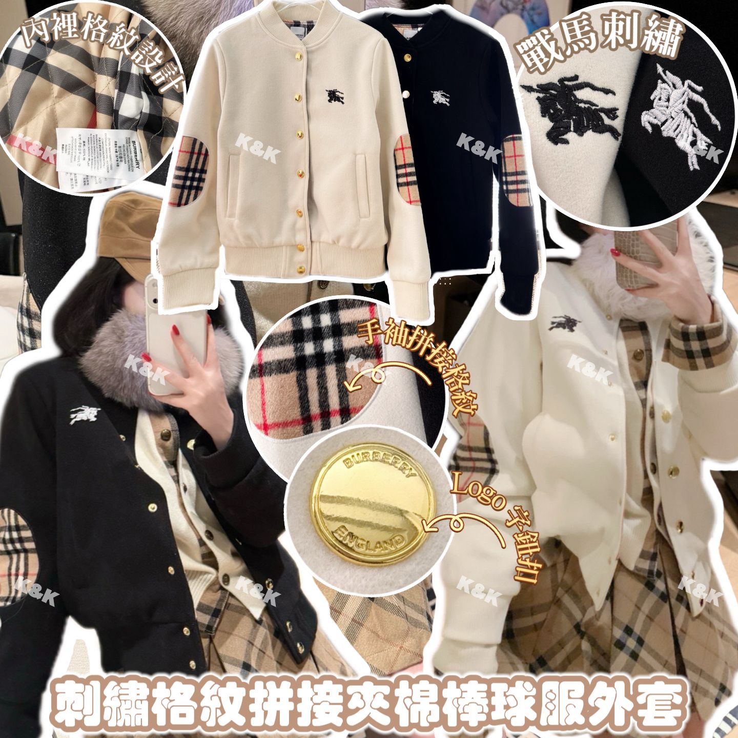 BUR*BERR* 刺繡格紋拼接棒球服外套®