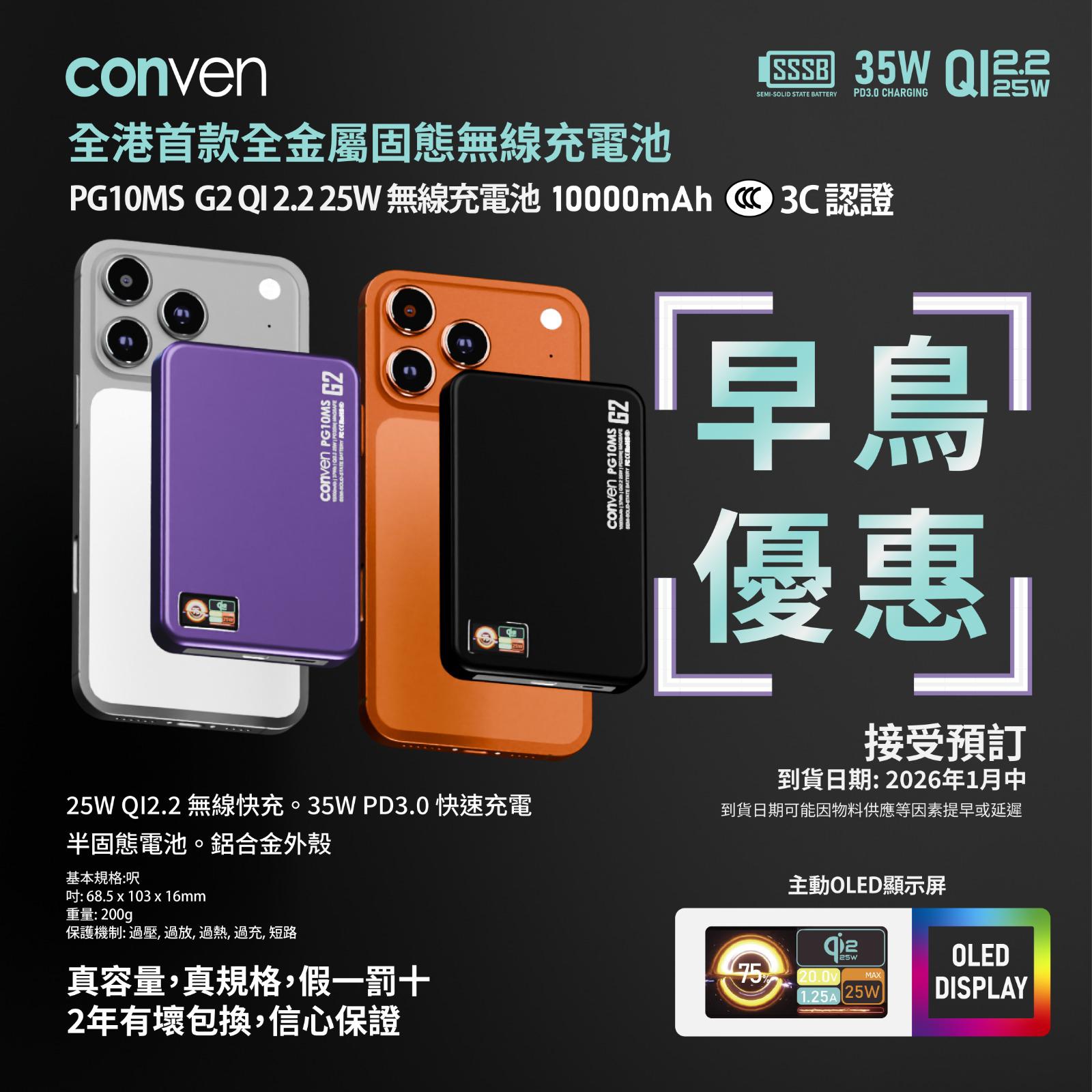 CONVEN PG10MS G2 磁吸無線充電寶來襲!香港本土品牌 CONVEN 全新旗艦力作 ✨