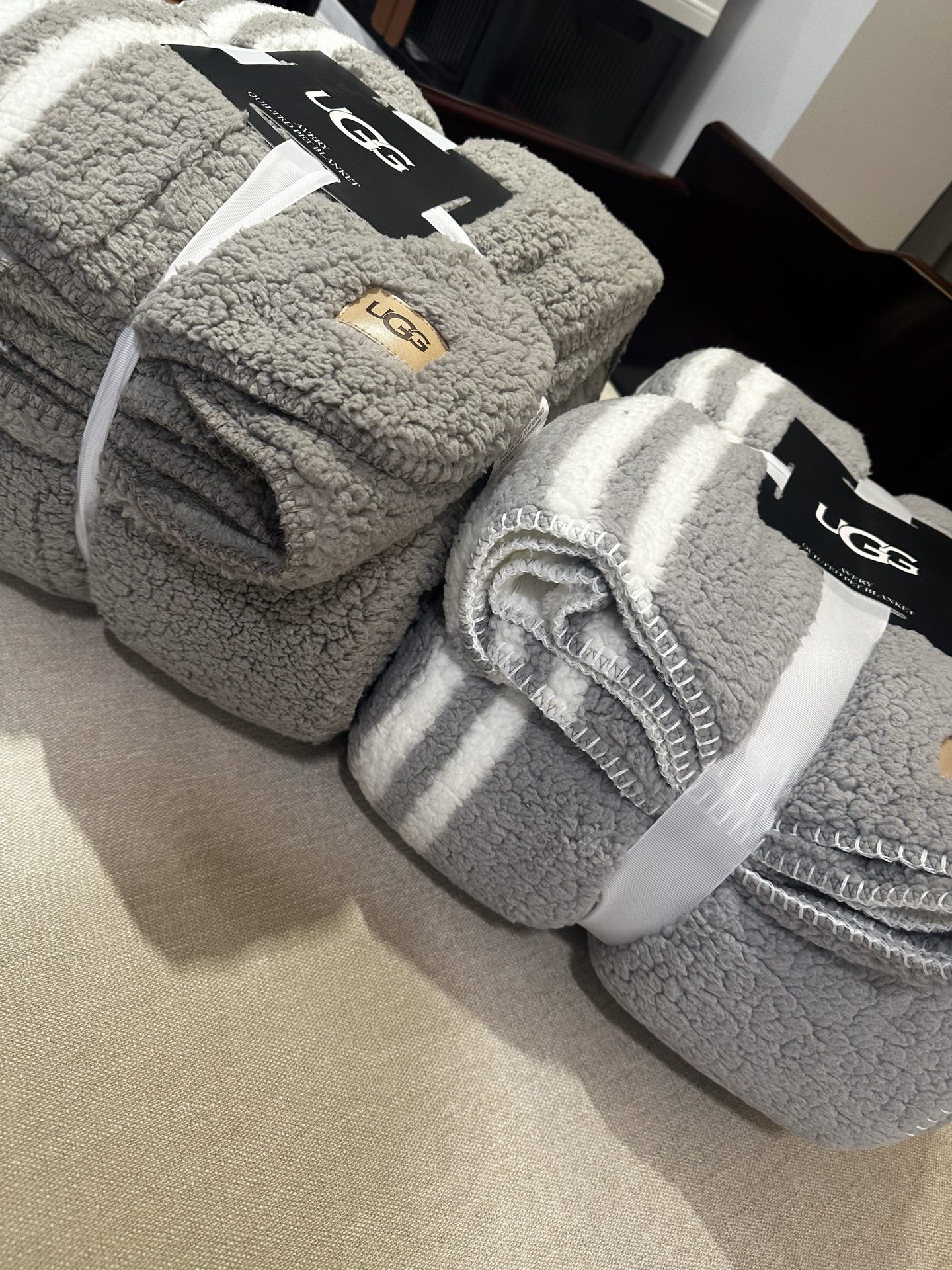 $268張。 ✨UGG 雙層加厚皮毛一體毯✨ 貨期3至6星期 【Jq0179027148】 #UGG原廠高貨 #冬季禮物首選 #溫暖升級 🩶 💎 質感升級・禮盒級設計 純原UGG出品,與官網同步上新🔥 外觀大方高級,無論自用或送禮都滿分💝 🧸 雙層加厚・皮毛一體工藝 採用A面雲朵般柔軟的泰迪絨+B面高級北極絨 柔滑親膚、保暖升級,冬夜裡溫暖加倍~☕️ 🛋️ 超大尺寸|200×230cm 完美覆蓋整張床或沙發,用途多多! 可當床毯、沙發毯、蓋毯、禮盒贈品皆宜~ 🌿 質感細節滿分 精緻縫邊+UGG皮標,細節體現高級感✨ 厚實柔軟,保暖卻不厚重,整個冬天都被幸福包圍~ 🎁 適合場合 ✔️ 居家取暖 ✔️ 送禮佳品 ✔️ 冬季布置 ✔️ 旅途陪伴 📦 溫馨提示 此款為高貨原版,數量有限! 🕒 運費需另補,下單前請留意 💬 想入手的請趕快~ 「UGG Cozy Life, Elevated.」讓溫暖與質感同在🤍