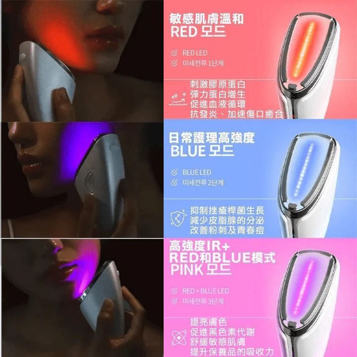 紅藍粉三色光療改善暗沉,近遠紅外綫促進再生,每天短時間打造透亮水光肌,輕鬆養出好膚質