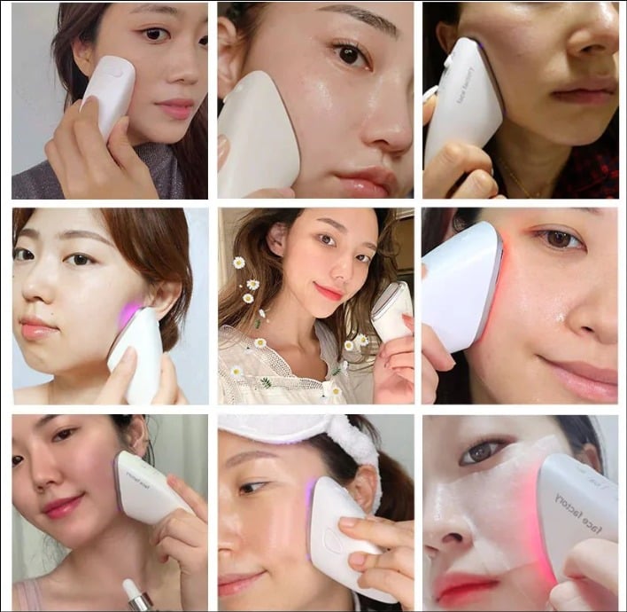 ✅紅光模式+低強度微電流:刺激膠原蛋白增生+全面提升臉部線條+彈性+光澤+減淡細紋+改善面部浮腫